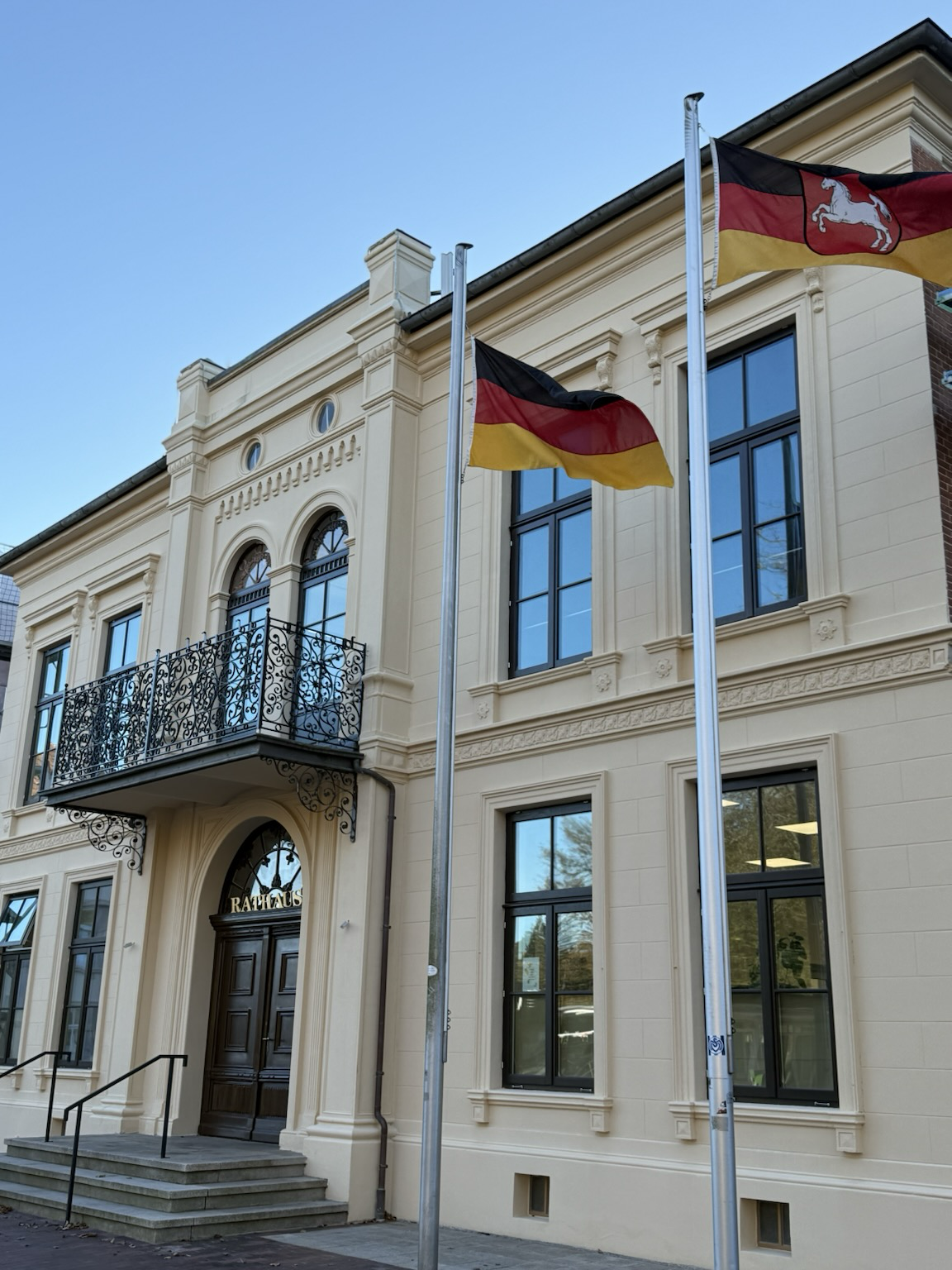 Norder Rathaus mit Flaggen