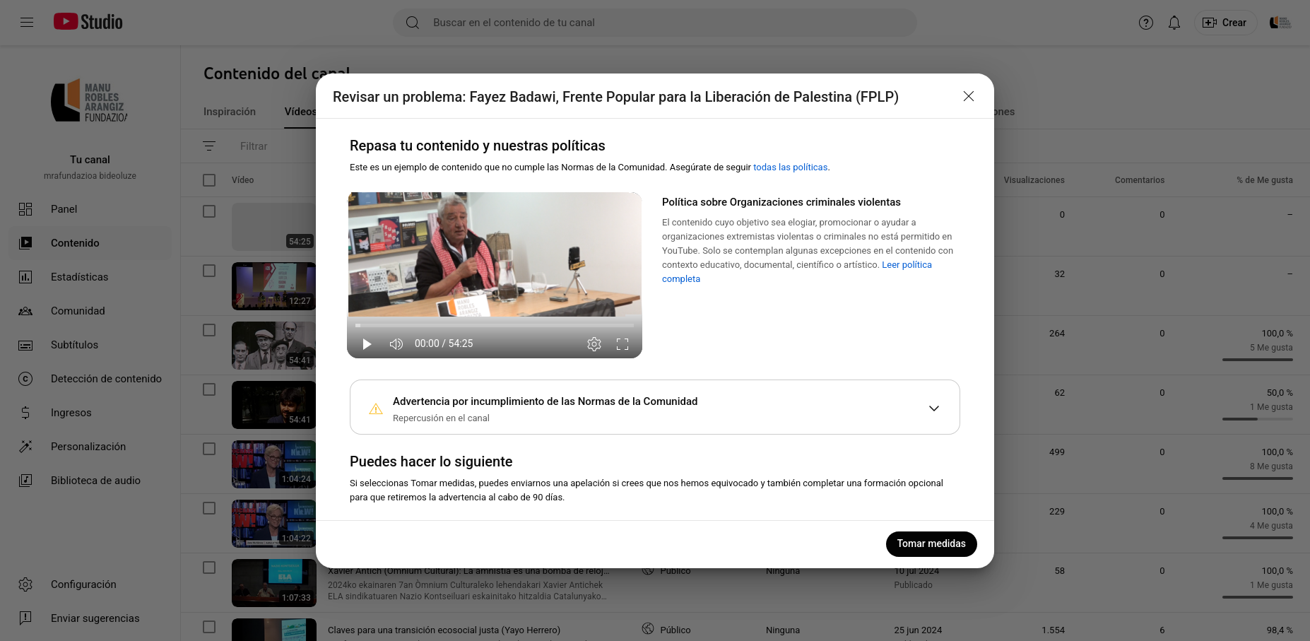 Parece que la resistencia palestina no es del agrado de #Youtube. La considera organización criminal, no así a Israel y sus instrumentos.