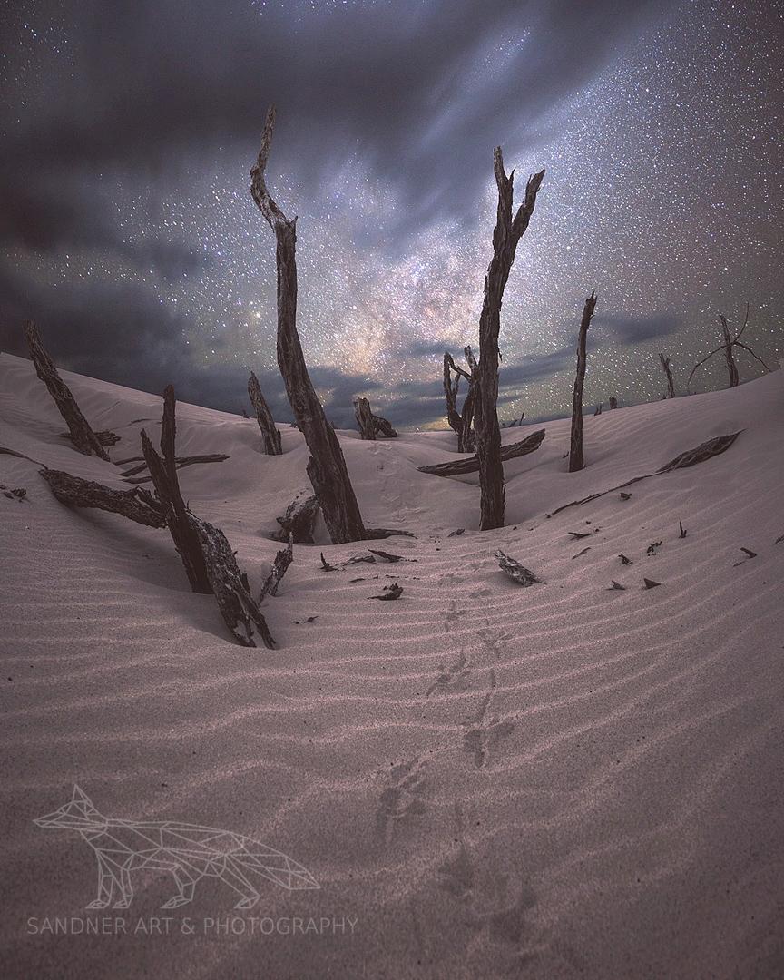 #VoieLactée #PhotographieNocturne #Astrophotography #PaysageNocturne #NatureSauvage #ArbreMort #NightScape #MilkyWayMagic #Starscape #DarkNature #EtherealVibes #VisualPoetry #NightScapers #NatureLovers #AstroSeekers