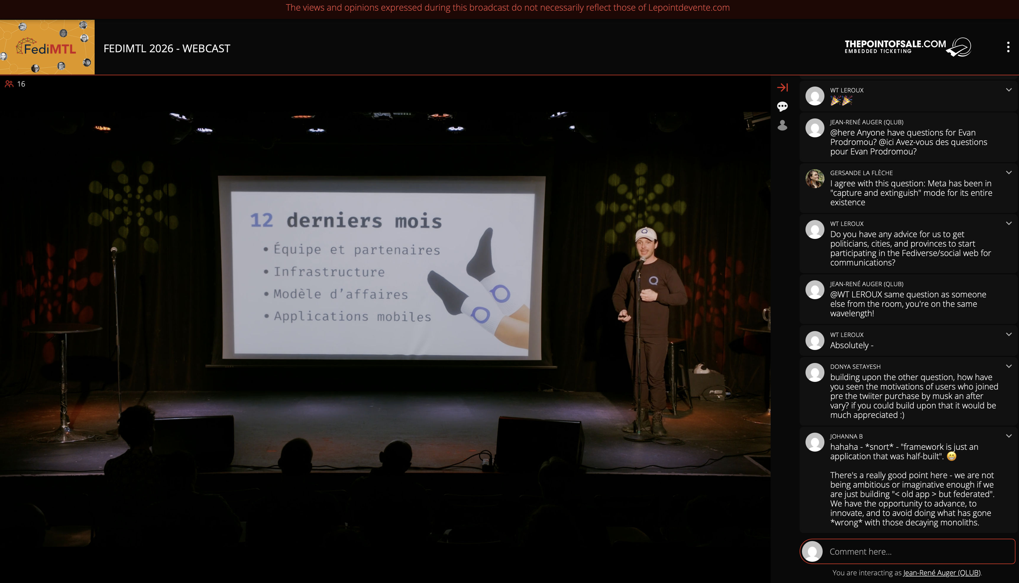 Credit for #FediMTL @info has to go to @meadmin and @Kath at #qlub who ever-cheerfully took on the challenge of piloting our endeavour into a smooth landing and @evan for curating the lineup and being the atomic clock the fediverse can rely on.