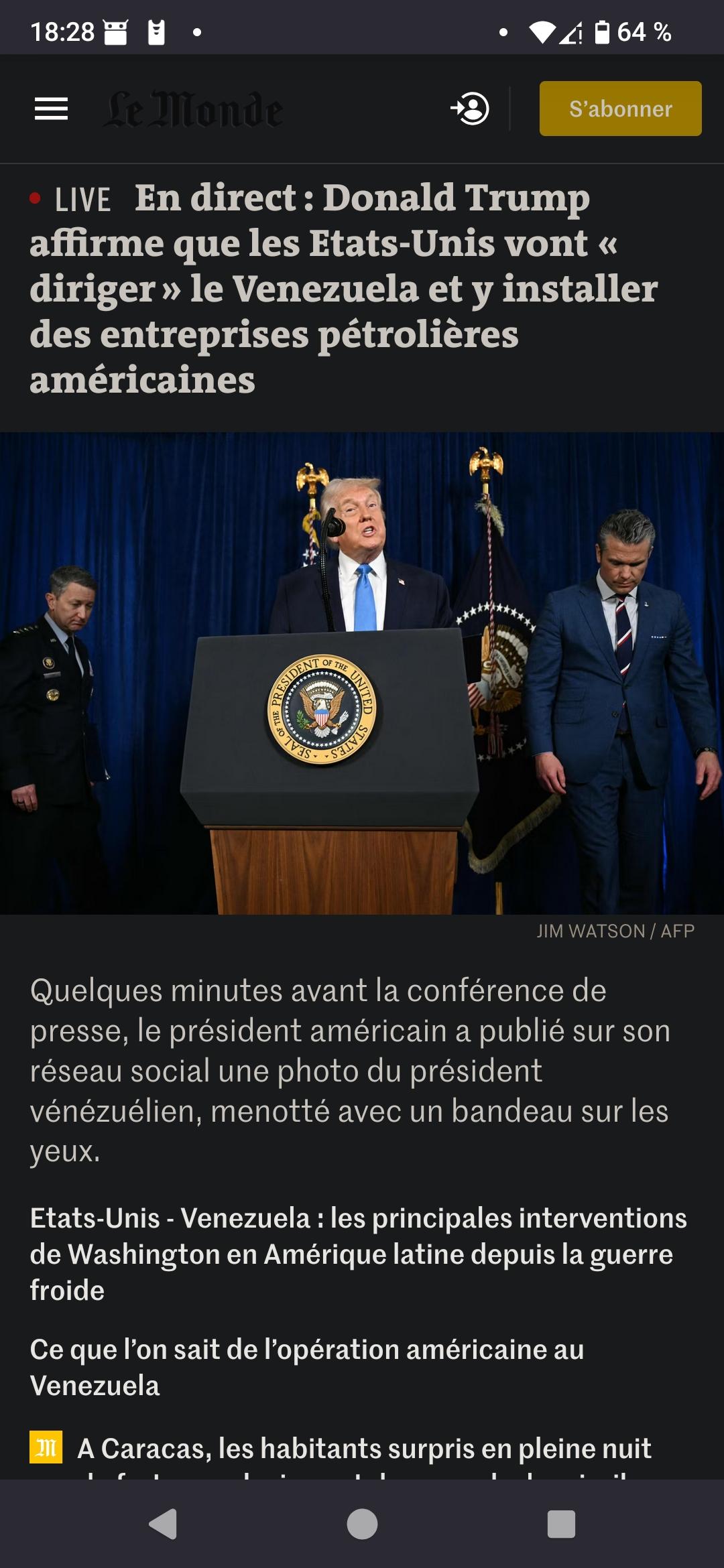 L'intervention et l'élocution de Donald Trump sont dignes du grand banditisme, du colonialisme et d'un véritable terrorisme (au sens terreur violente). Il a affirmé que les Etats-Unis vont « diriger le pays » [le Venezuela] et y installer des entreprises pétrolières américaines.