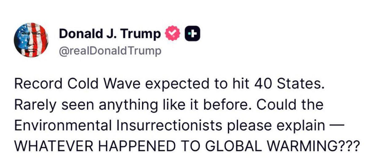 As the Arctic warms, it turns the earth's normally RELIABLE rotating jet stream into a drunkard's merry-go-round of madness, throwing this huge Arctic cold air mass down to the southern US.