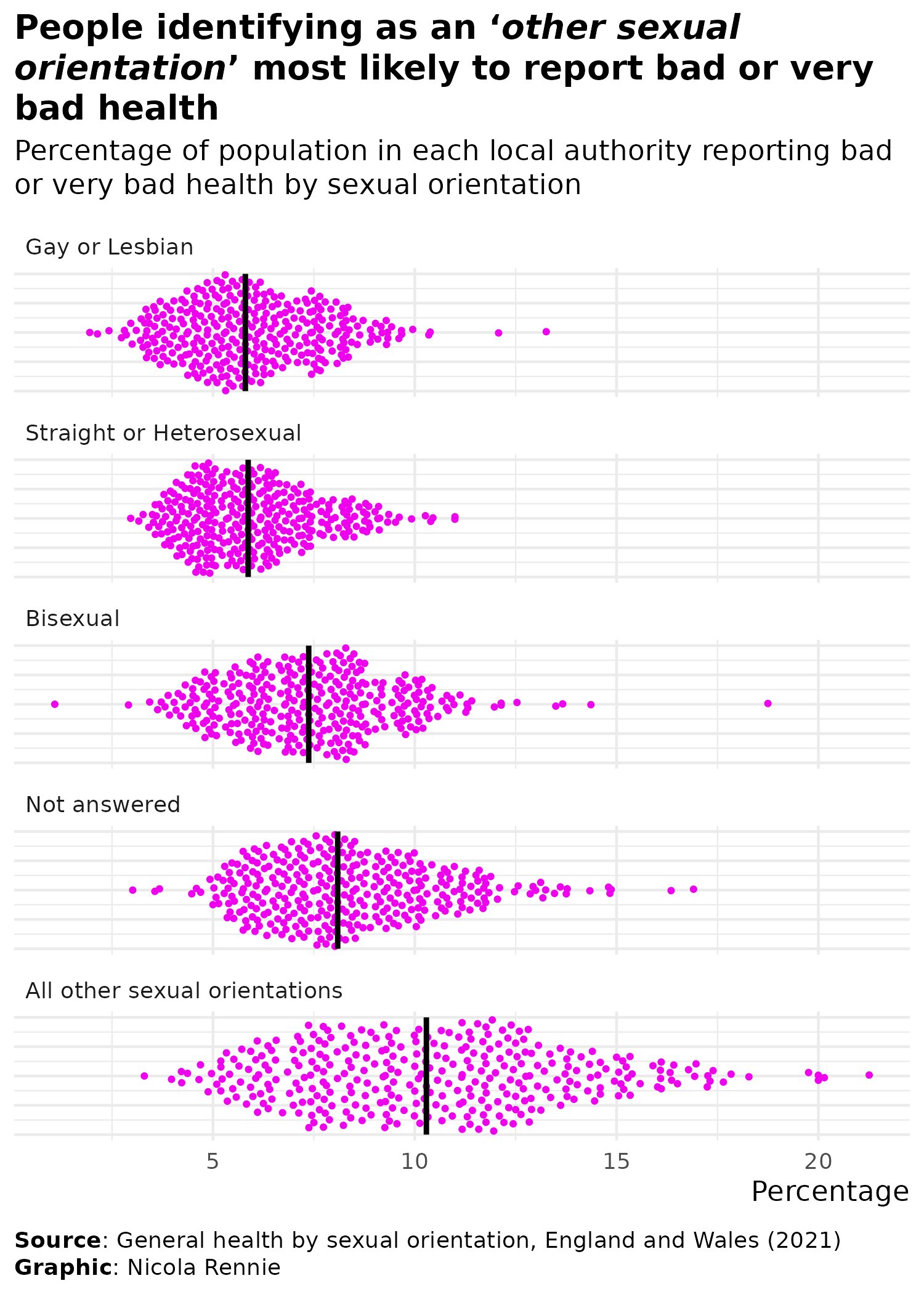 Inspired by #TidyTuesday & LGBTQ+ History Month myself and Kirstie Ken English are challenging people to produce visualisations using UK census data on LGBTQ+ people 📊