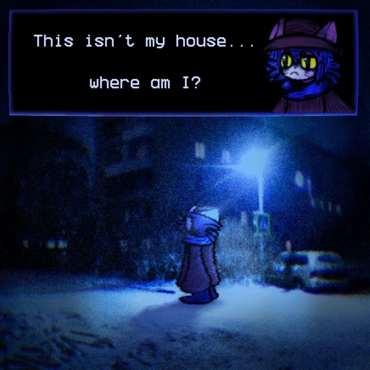 Niko from Oneshot in a post-spviet suburbia asks "this isn't my house where am I?"
