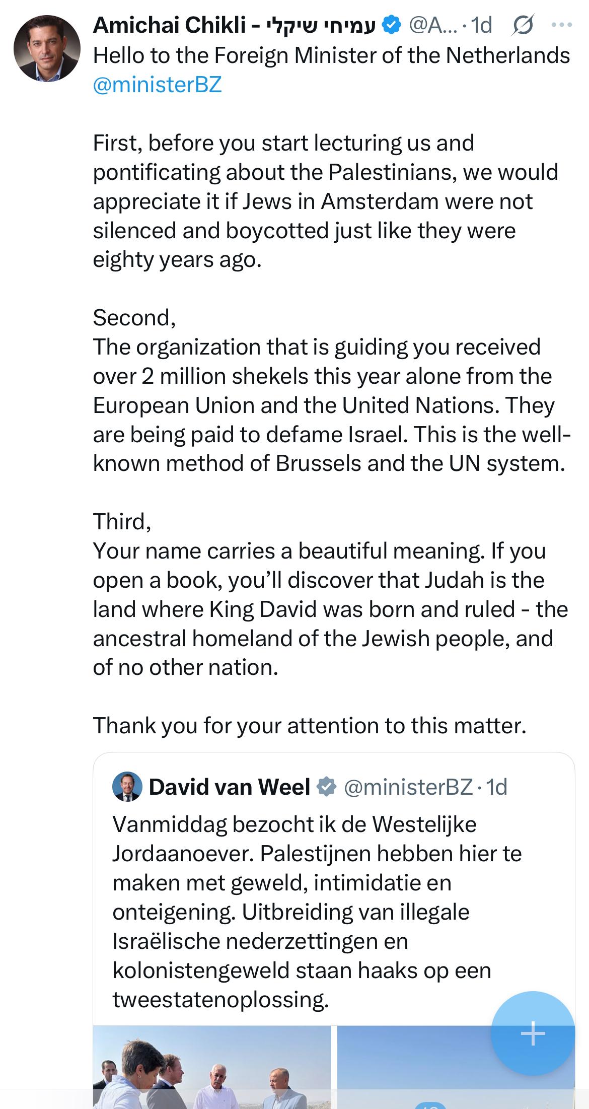 I believe that the “unconditional friendship and support” between the #Netherlands and #Israel may increasingly end up in a Jerry Springer public freakshow stage fight…