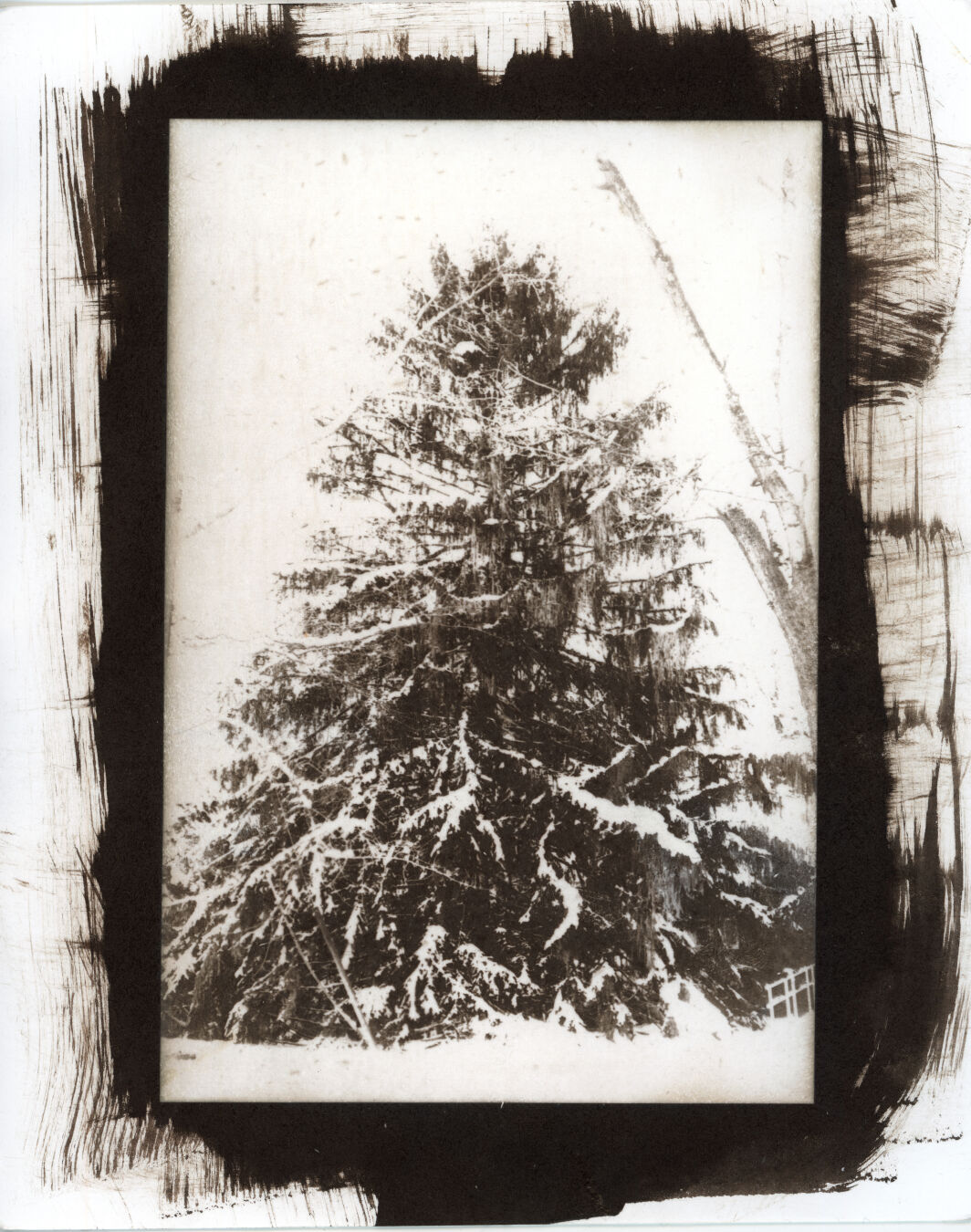 Almost 50 years ago, this was our Christmas tree. My folks got a live tree for a change, and planted it after Christmas. It has taken over this half of the front yard, swallowed up the power and phone lines, killed all the grass underneath. It’s a monster. I made this Kallitype yesterday from a photo I shot last week with my Contax IIIa on Kodak Kodalith 6556 and developed in D-19 high contrast developer. Printing as a Kallitype almost seems to have added back some gray tones that the negative didn’t have. It’s a Christmas miracle.