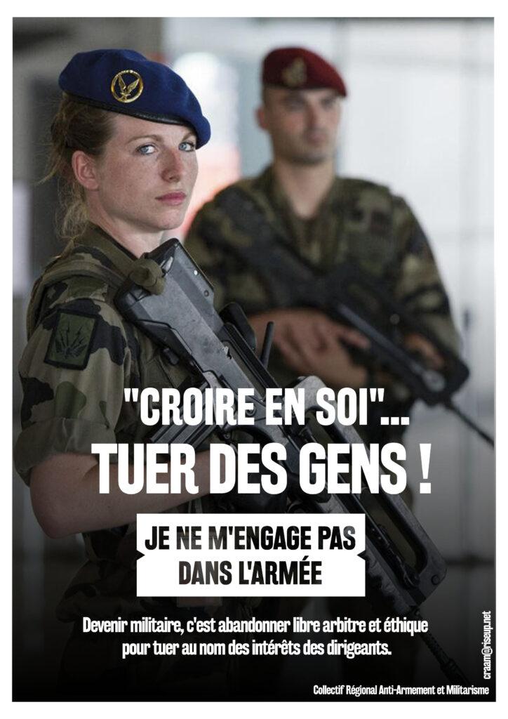 Une autre affiche de la campagne #antimilitarisme "Je ne m'engage pas dans l'armée".