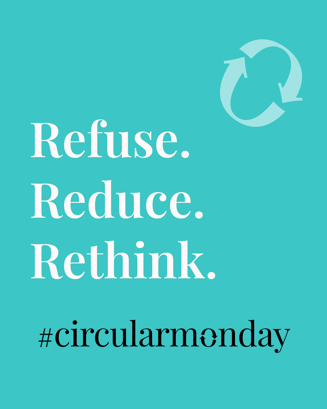 Cartell del Circular Monday, previ al Black Friday, amb les paraules "Refuse. Reduce. Rethink." i el hashtag #CircularMonday sobre fons blau cel.