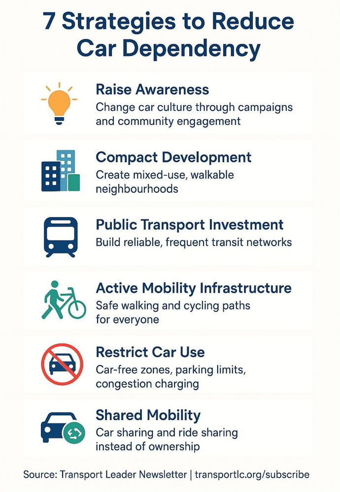 🚄 🚌 🚗 🚴‍♀️🚶‍♀️Beyond Car Dependency: Seven Strategies for Creating Post-Car Cities