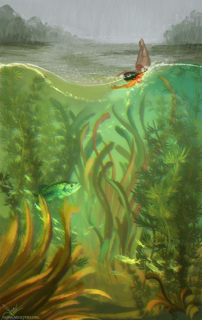 Day 22 of #ArtAdventCalendar: "Dive In", personal work inspired by long gone summers. 🐟