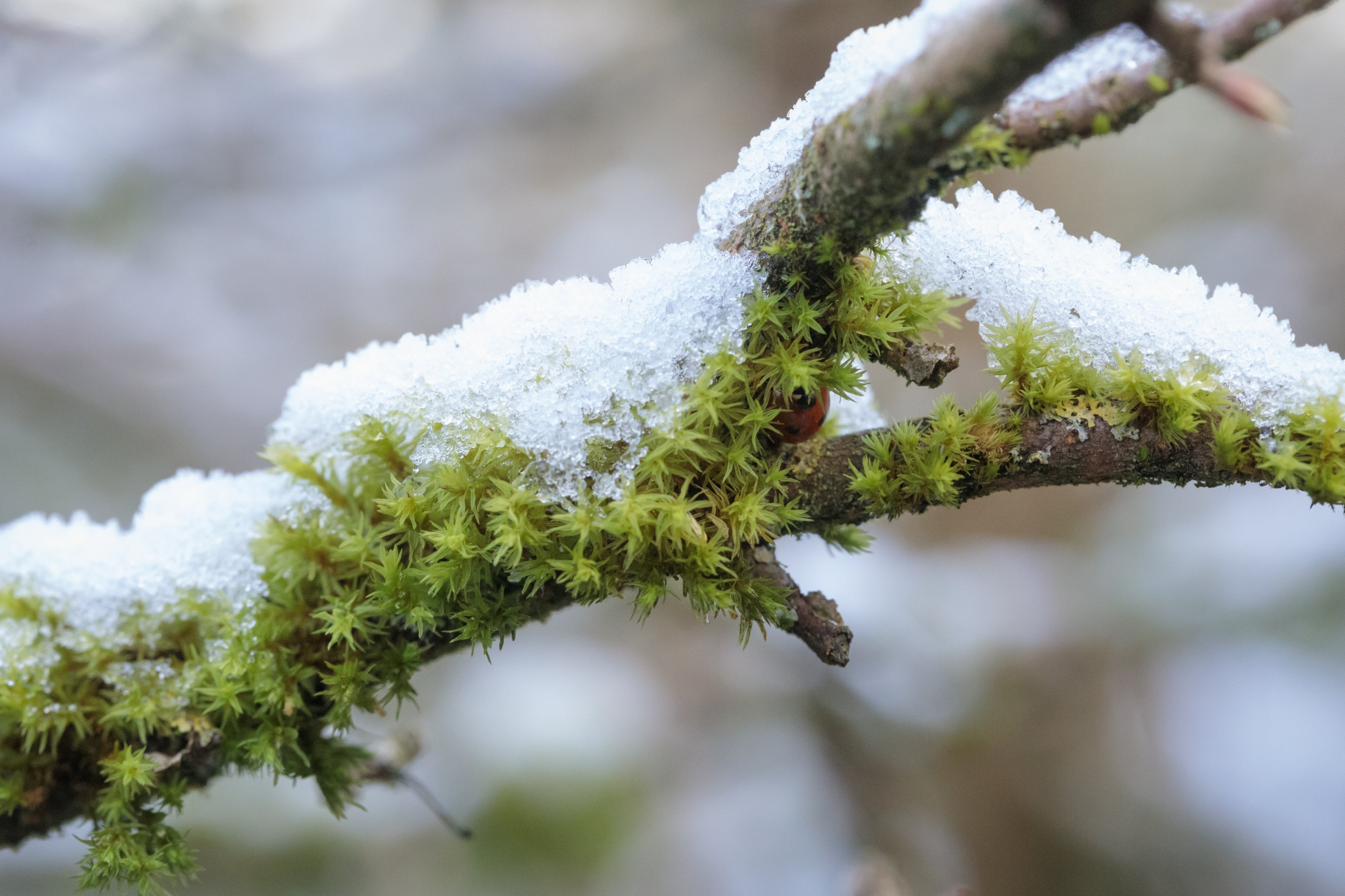 Every year in autumn, these tiny mushrooms pop up on a mossy wall near my home. And then the first frost comes and turns everything into a glittering miniature wonderland ❄️
