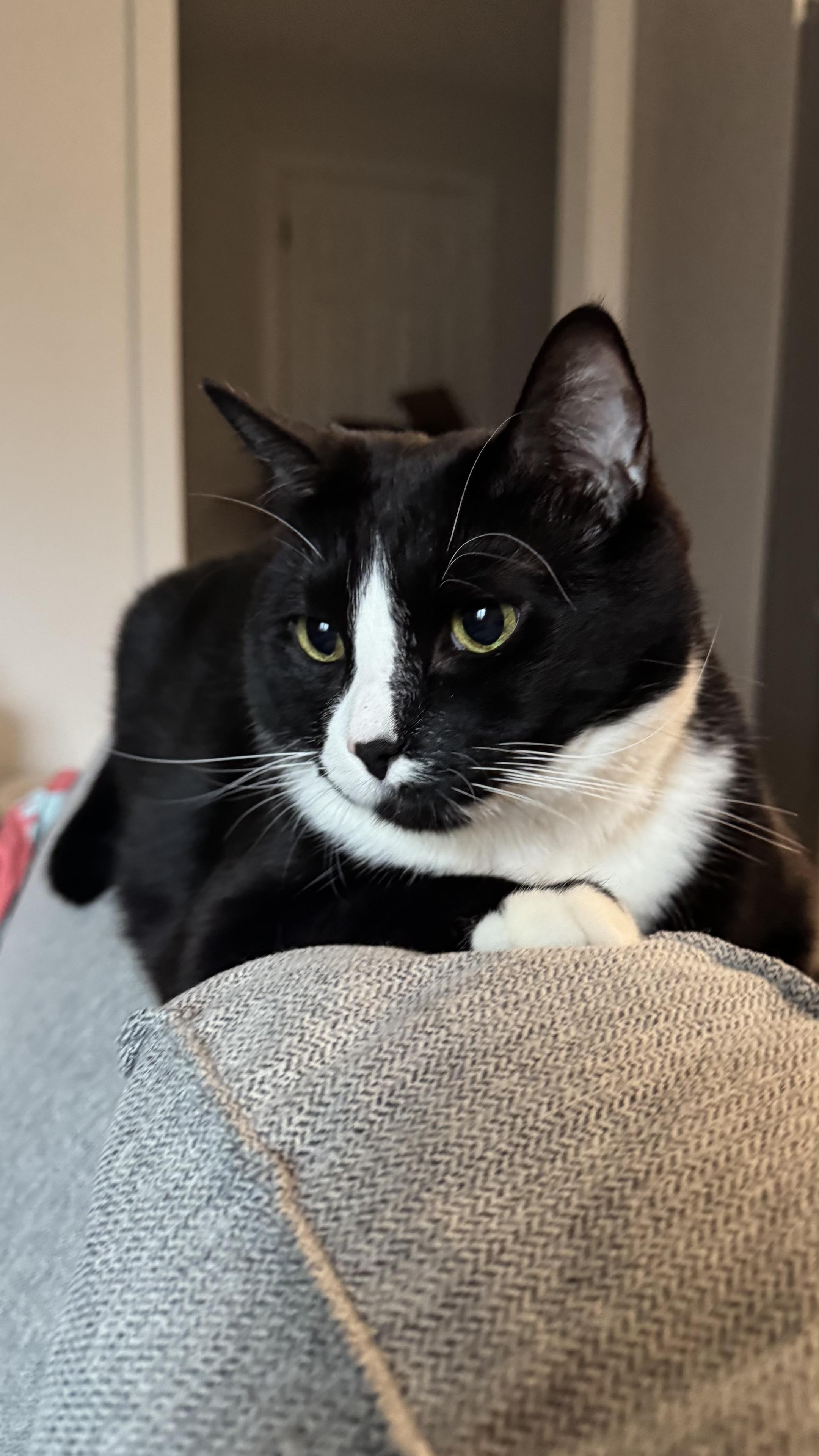 This is his favourite spot in the house. #Caturday #TuxedoCats #CatsOfMastodon #Cats