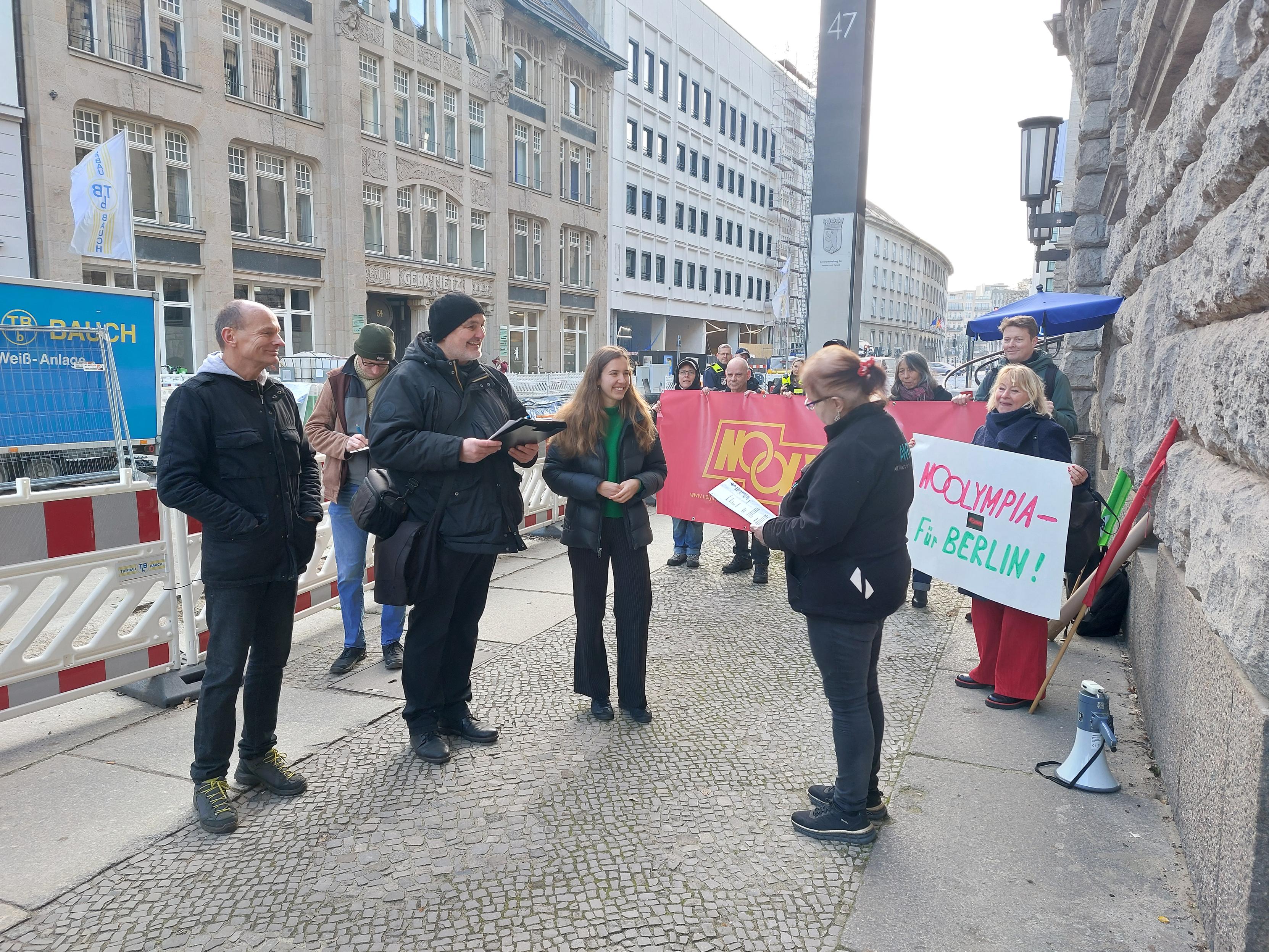 Heute hat das Berliner #NOlympia -Bündnis den Antrag auf Einleitung des Volksbegehrens gegen Olympia in Berlin 2036, 2040 oder 2044 der zuständigen Innenverwaltung übergeben. Jetzt hat sie zwei Monate Zeit für die obligatorische Kostenschätzung. Danach werden die ersten Unterschiften gesammelt.