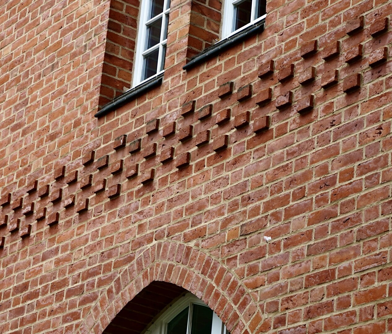 Jour 2, ou J2 comme on dit dans le jargon, et voici une petite frise discrète repérée en passant devant le Hansa Gymnasium à Stralsund, un lycée achevé en 1913 qui mélange néogothique et Jugendstil. C’est tout bête, mais élégant, et ça coupe efficacement une façade un peu austère, un peu rectiligne. Bref super idée déco, c’est validé ça part direct dans le moodboard de l’Avent. Septembre 2021.