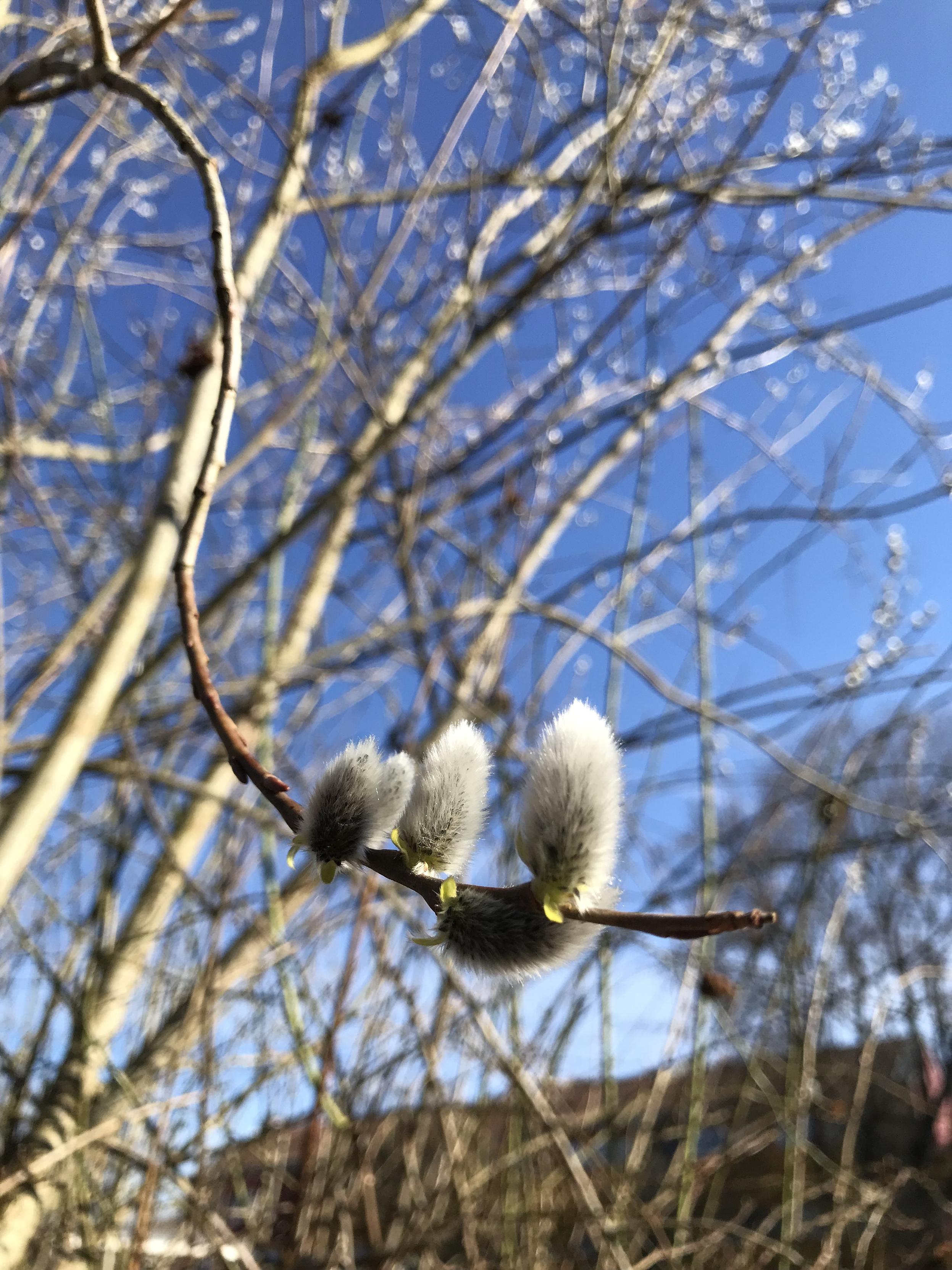 Erster Besuch bei den Bienen, bei 20 Grad viel Flugverkehr. Es gibt schon Pollen, Nektar vermutlich erst, wenn die Salweide gelb wird. 🐝