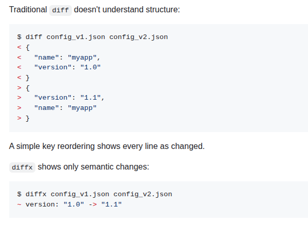 diffx (CLI) and its diffx-python library finally produce smart diffs for JSON, YAML, and Python dicts. They understand data, ignore irrelevant order, and save SO much headache.