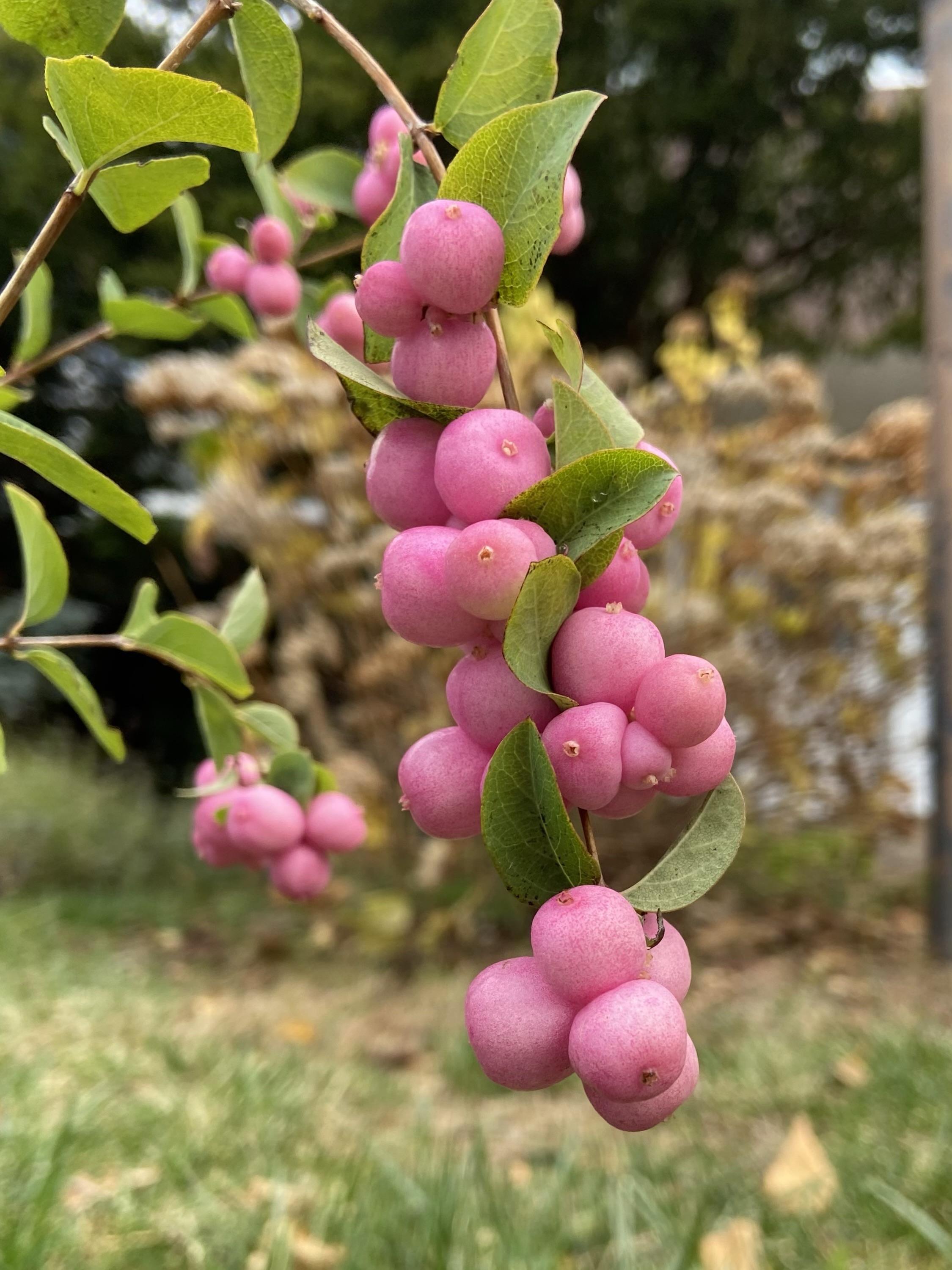 The coralberries started out pale pink, but now they're turning a gorgeous deep freckled pink.