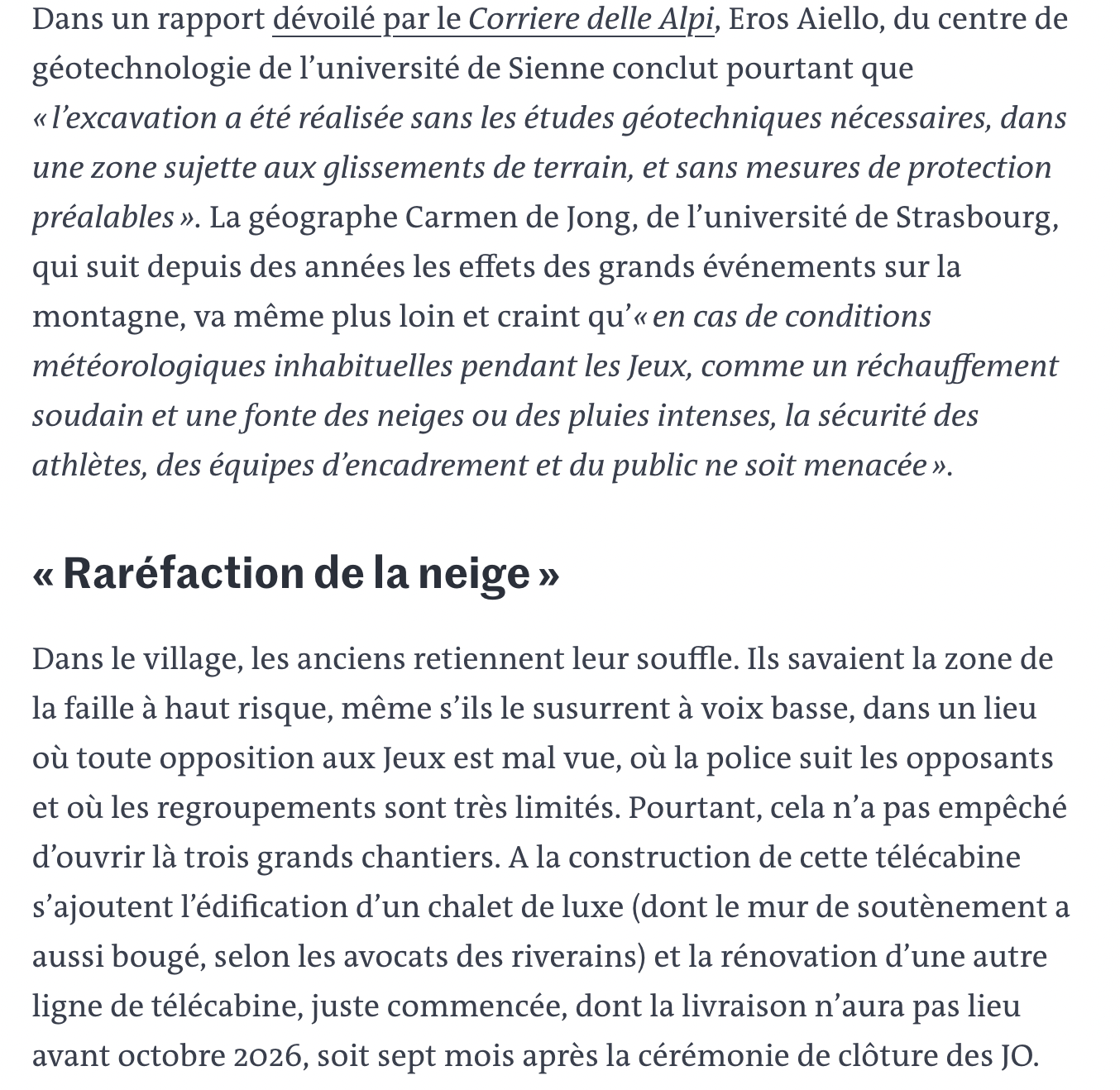 À vos calculettes : « On est passé d’une enveloppe de 1,5 milliard d’euros initialement prévue à 6 milliards d’euros de dépenses à une centaine de jours de l’ouverture », soupire Vanda Bonardo. Un « dérapage » à comparer au budget de 2,132 milliards d’euros, approuvé lundi 20 octobre, par le Comité d’organisation des Jeux olympiques et paralympiques des Alpes françaises 2030."