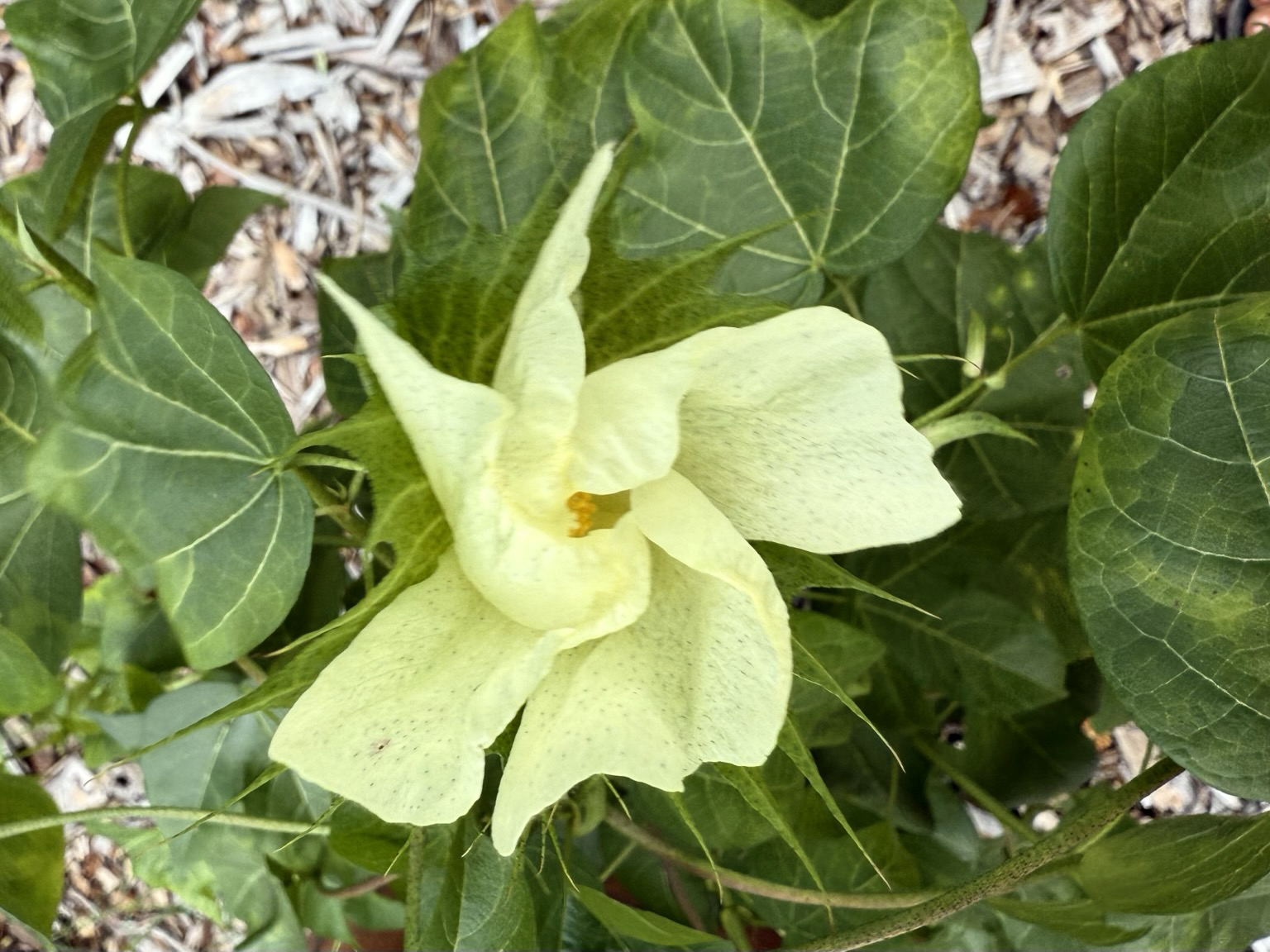 It’s still super hot but the plants sense that it’s late summer and have begun to flower again. I love all mallow family plants and was given permission to collect seed from native cotton at the community garden the last time I volunteered. This is the first blossom from one of two plants I propagated—a fluffy cotton ball to follow. #NativePlants #gardening #Zone10 #Florida