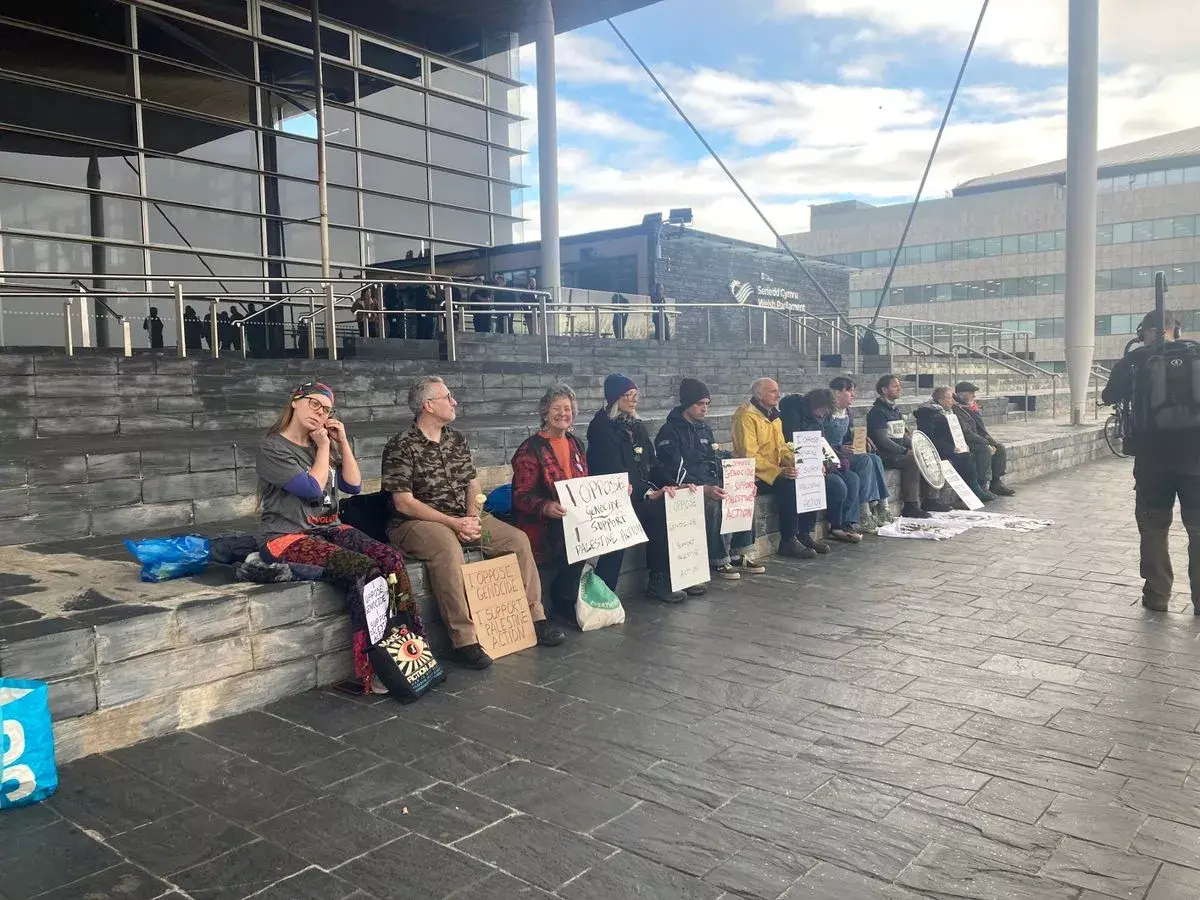 Bobby Vylan at a protest outside Leinster House on Thursday