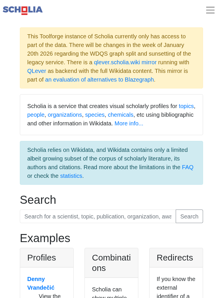 yesterday evening work with @EvoMRI on the @wdscholia instance on Toolforge. We noted that our main instance only shows half of the results, only @wikidata 'main' part. The 'scholarly' articles part are no longer there. That day has been pending.