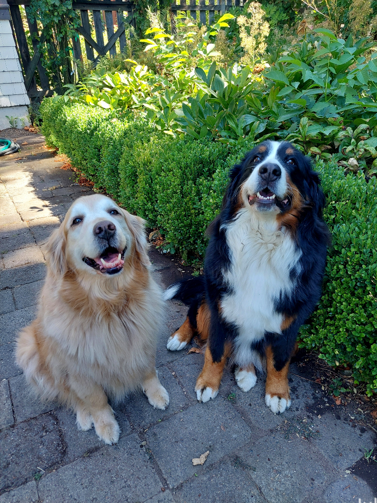 Caught a moment of cute. Kaji is friend to everyone and was the most patient cat dad to all of our dogs, even when they were being too rowdy or rough he’d just complain and never bite or scratch. #berner #bernesemountaindog #bernersennenhund #dog #dogsofMastodon #dogstodon #cat #orangecat #feline #catsofMastodon