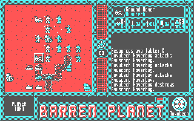 I got inspiration for #BarrenPlanet from a number of sources. It was built on a combat engine of my own design, but included elements from computer games like the #BattleIsle series and Steve Jackson's #Ogre board game. I discuss these sources of inspiration in a blog post at http://dos.cyningstan.org.uk/post/184/barren-planet-the-inspiration #gamedev #ibmpc #msdos #cga