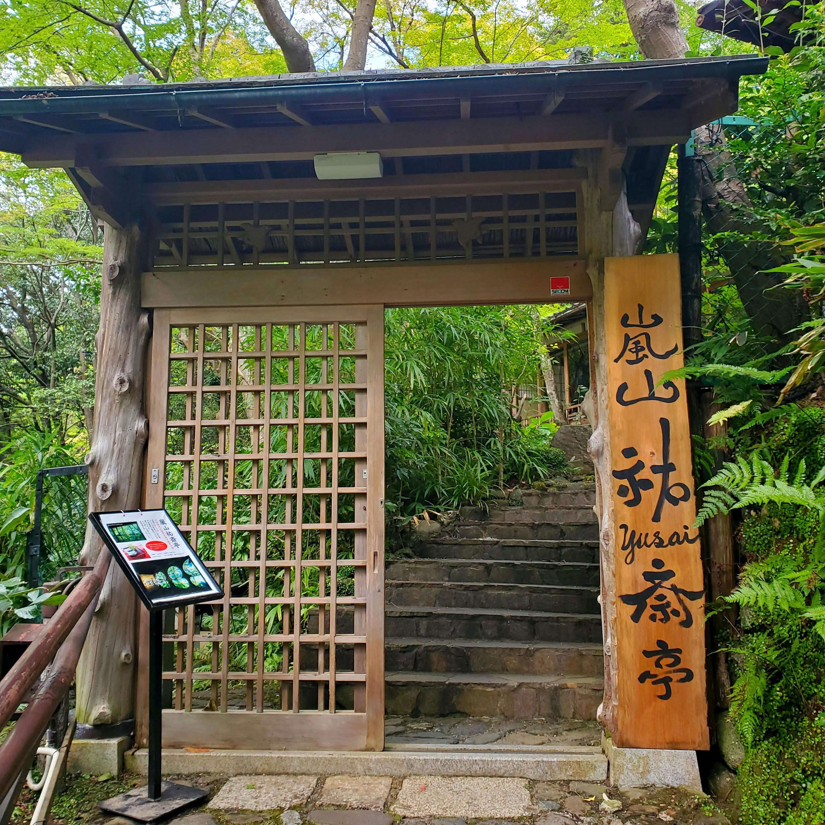 Nao-san sits in front of stunning greens at Yusai-tei.