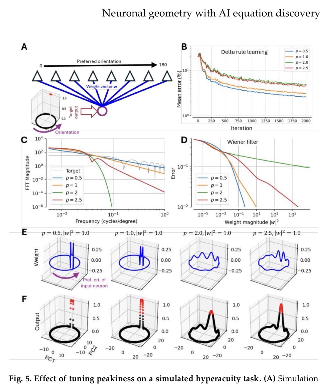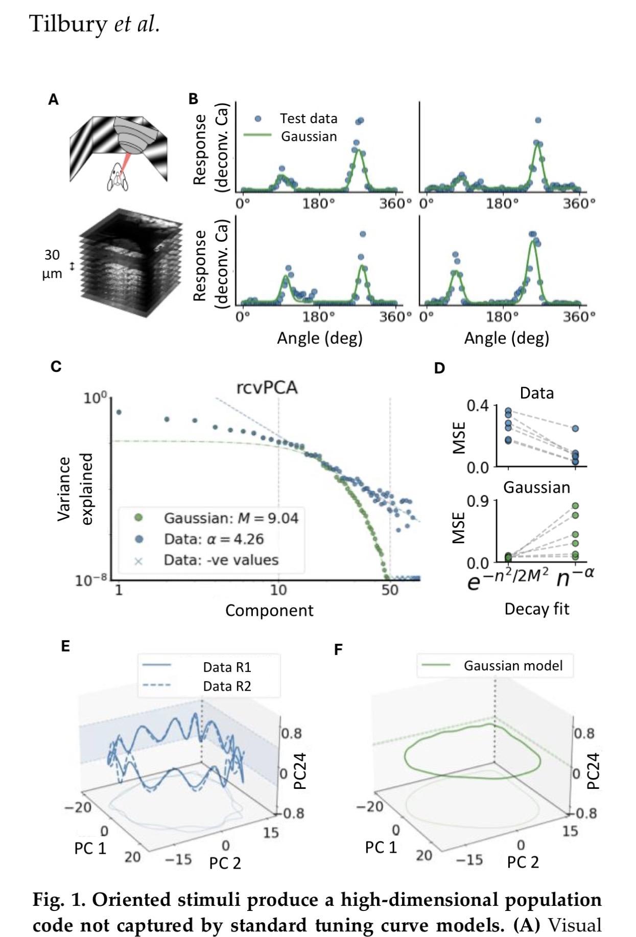 The approach generates & evaluates 100s of candidate equations, finding "peaky" non-Gaussian tuning functions whose Fourier structure matches power-law dimensionality observed in real #V1 pops. Links shape of single- #neuron tuning to #PopulationLevel geometry using both data fits & analytical derivations.