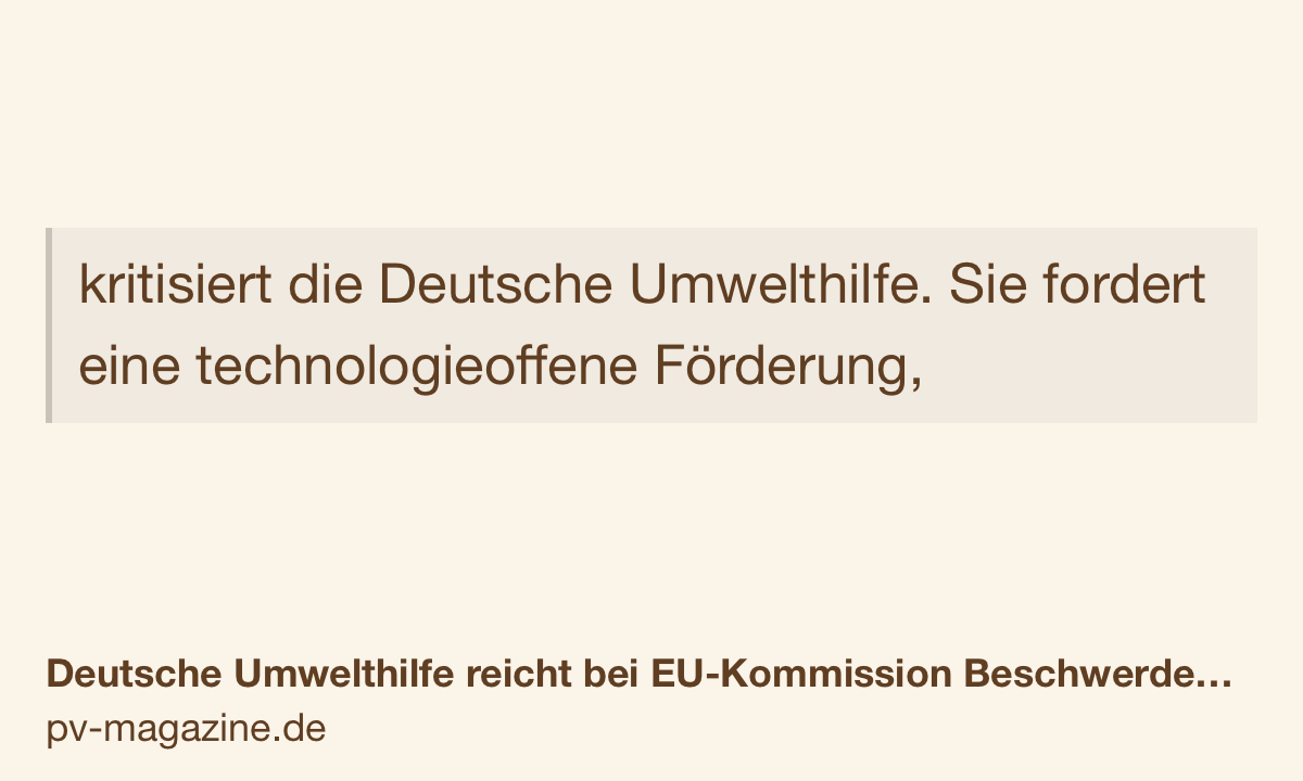 Deutsche Umwelthilfe reicht bei EU-Kommission Beschwerde gegen geplante Staatshilfen für Gaskraftwerke ein https://www.pv-magazine.de/2026/01/15/deutsche-umwelthilfe-reicht-bei-eu-kommission-beschwerde-gegen-geplante-staatshilfen-fuer-gaskraftwerke-ein/