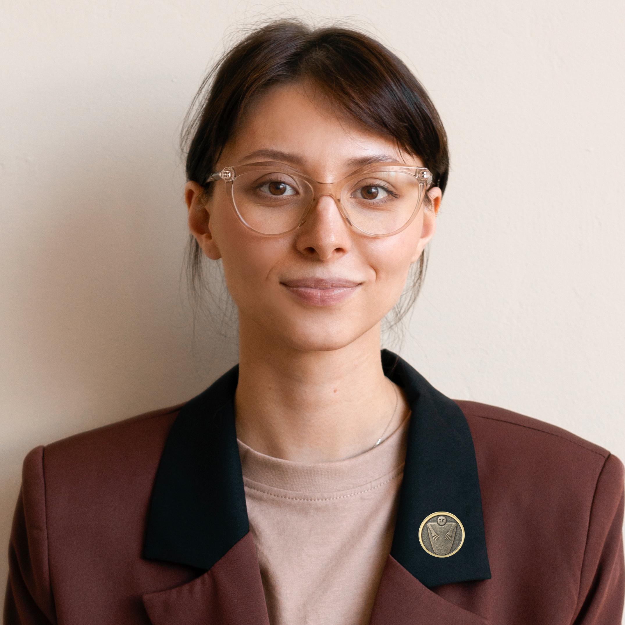 Small Round Lapel Pin Design based on Anthropomorphic stone stelae (statue menhirs) from Tyritake, Crimea. 3600-2300 BC. These lapel pins are the perfect addition to your outfit on any day! Add something small and speak volumes about your personal style!