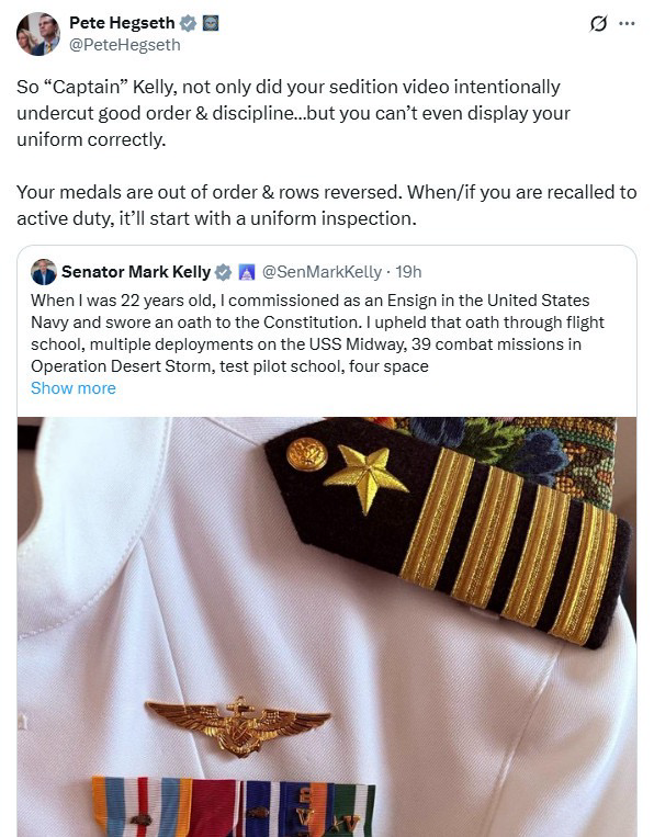 Sen #MarkKelly has responded to the #Pentagon / #Hegseth / #Trump threat.