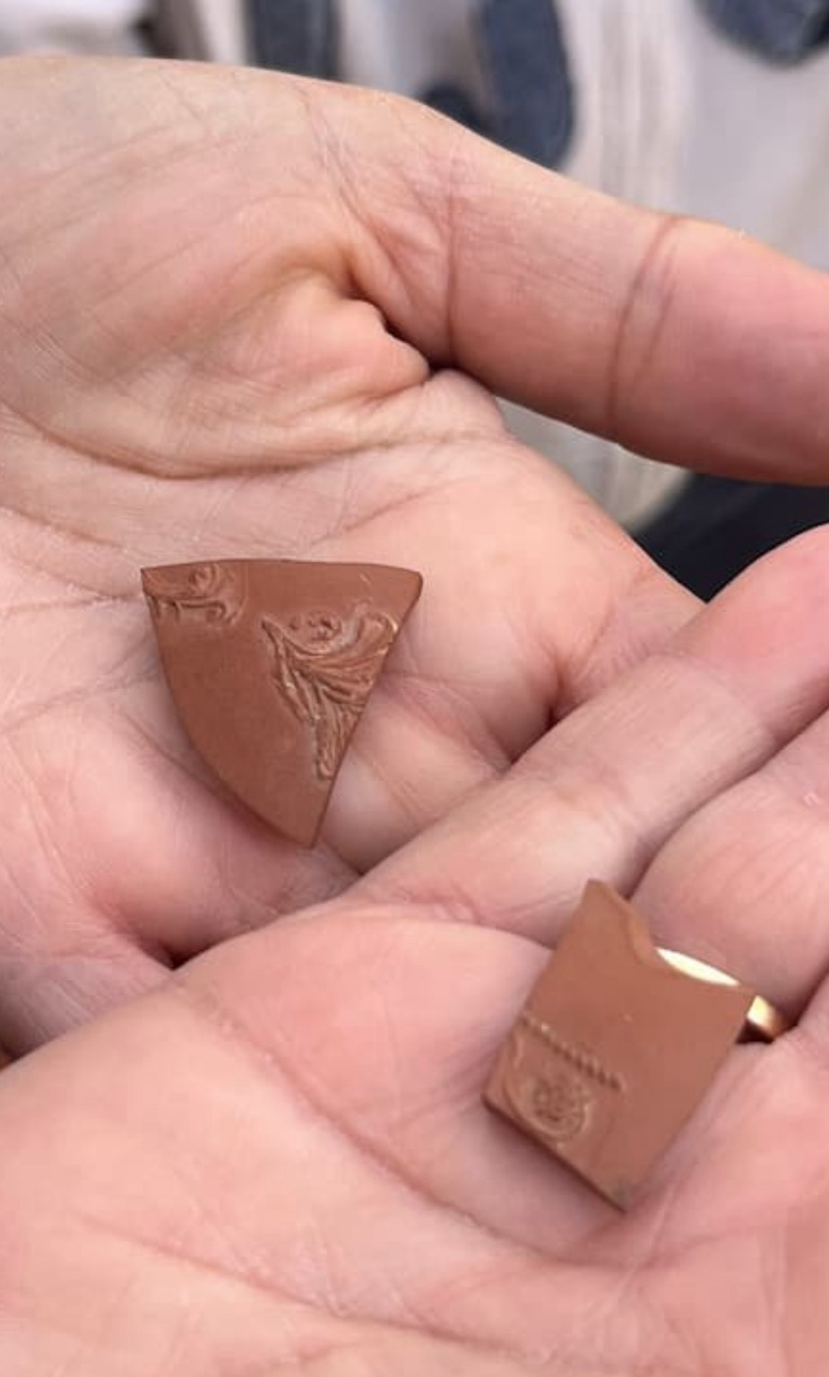 Decorated pottery pieces were among the thousands of artifacts found. (Dana Hedgpeth/The Washington Post)
