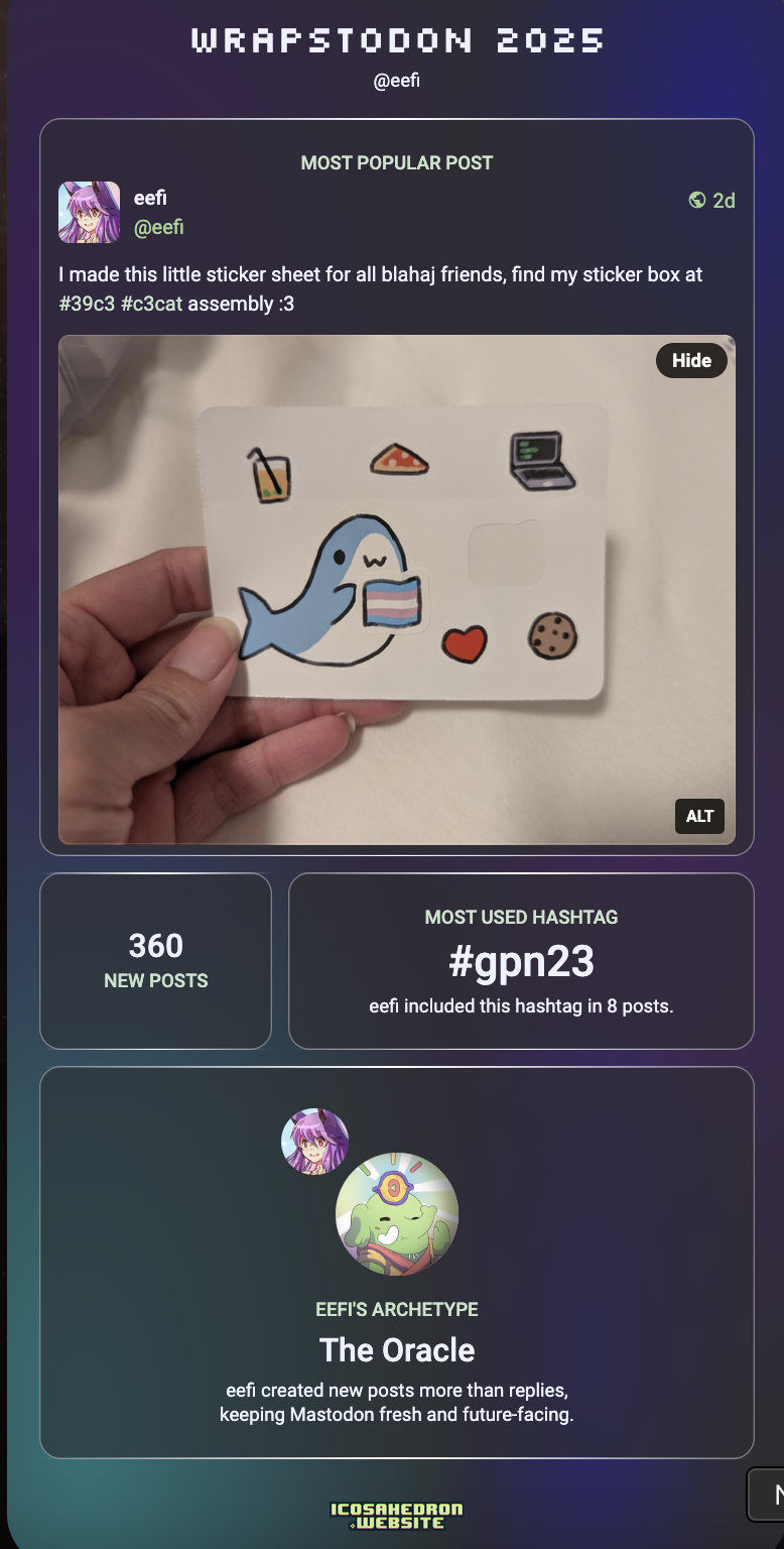 https://icosahedron.website/@eefi/wrapstodon/2025/d5f95150b7412861