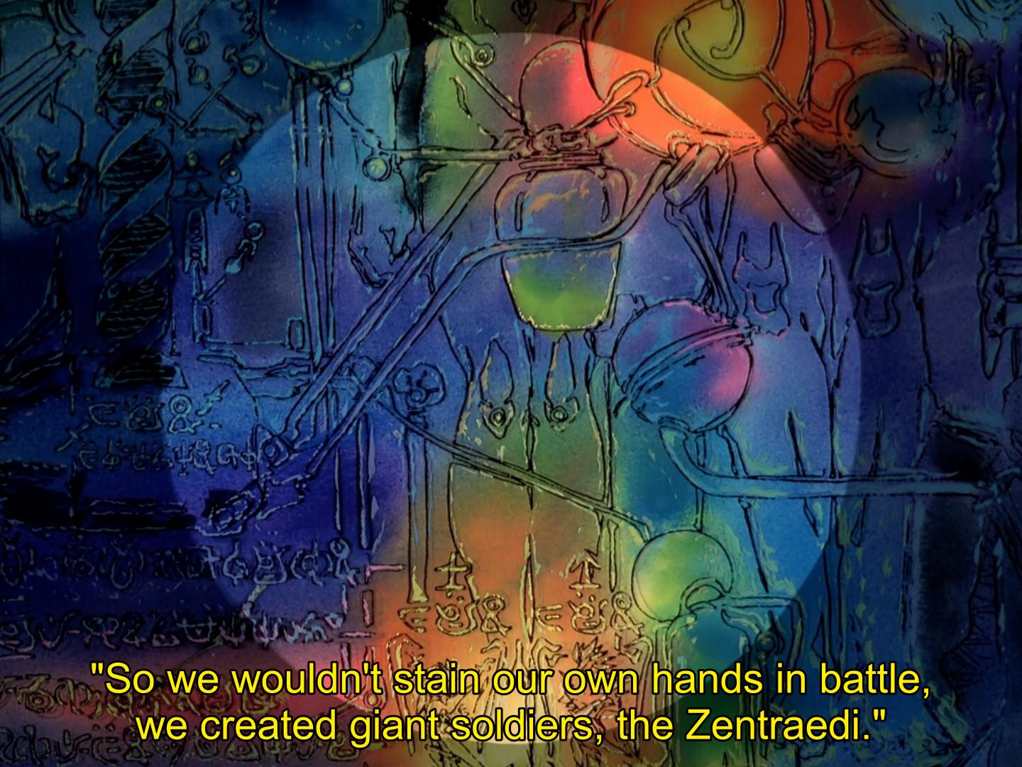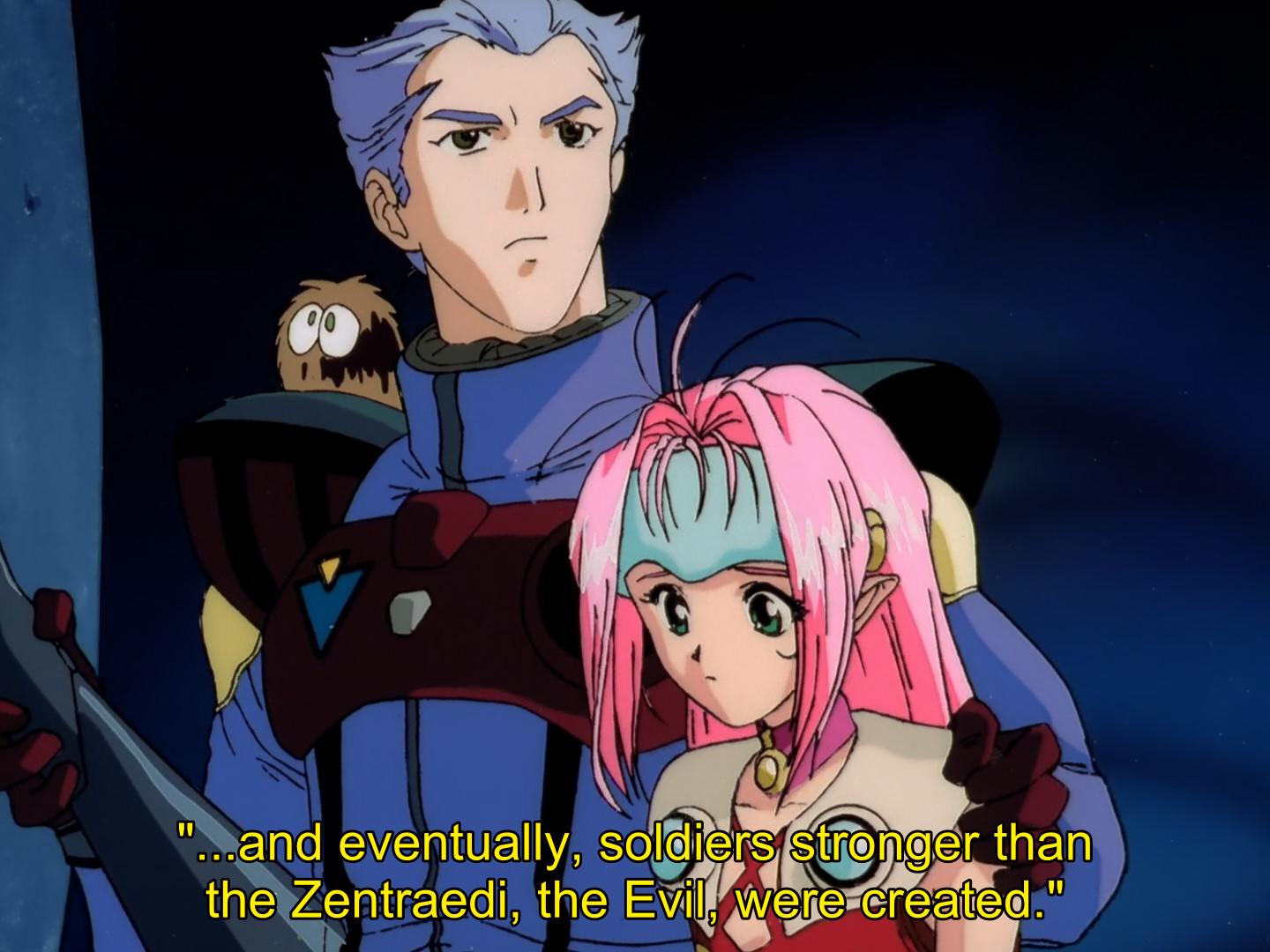 Macross 7: it's kind of incredible how the show drops the Protoculture decided that creating giant soldiers to do their battle for them was the clean thing to do followed by "and then we made even more powerful soldiers called the Evil"