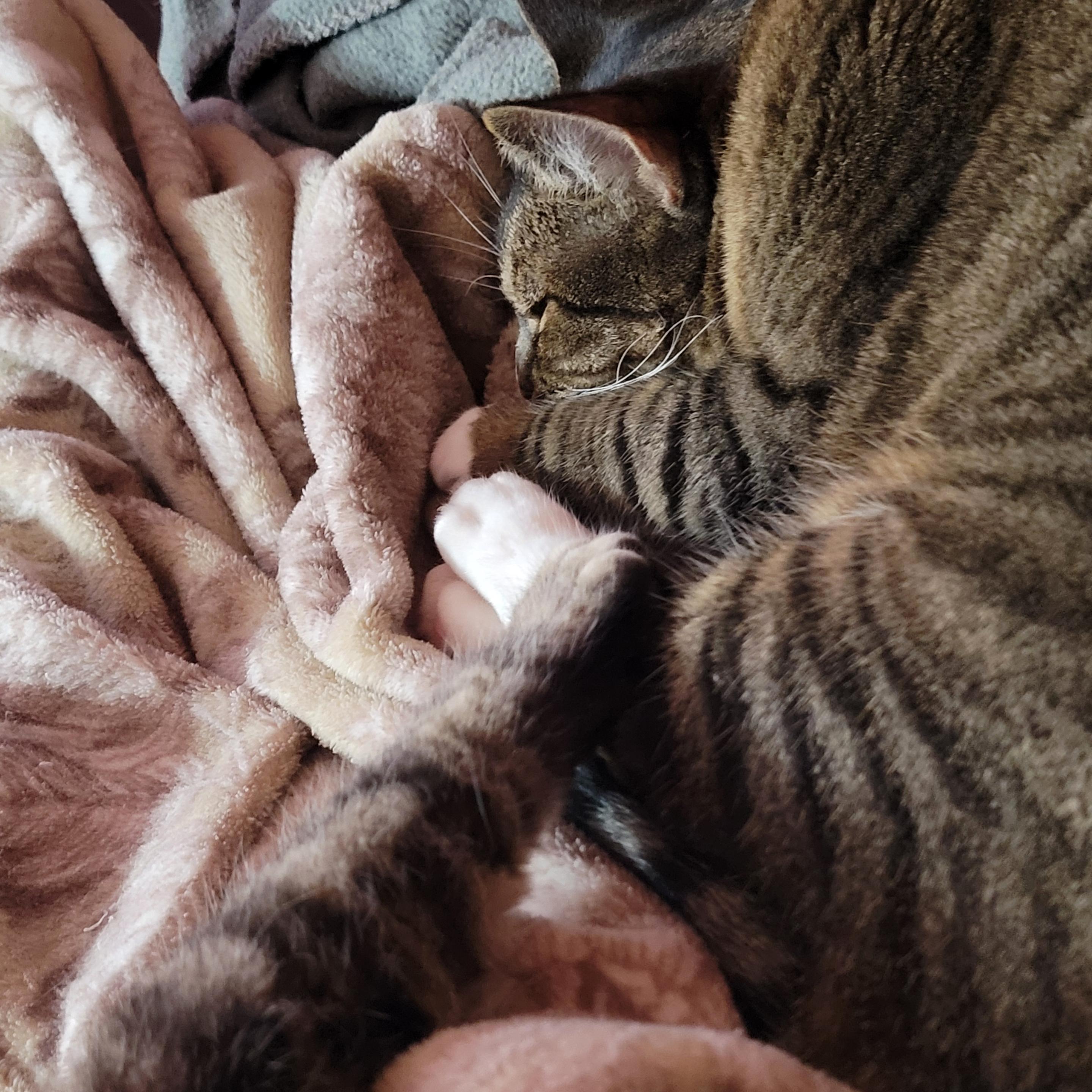 Sometimes, when they're cuddled up near each other, Nibbler will reach out to touch his lady love. #caturday #TheLadyCatherineAndNibbler #catstodon #Nibbler #TheLadyCatherine #CatherineLadyDarlington #LadyCatherineOfDarlington #CatsOfMastodon #CatsOfFedi