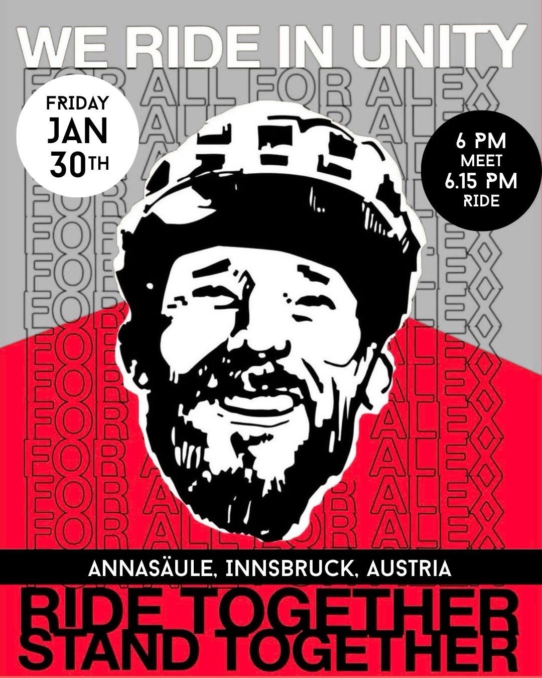 Alex was a passionate cyclist. It is with this in mind that we are meeting this Friday, January 30th, at 6 PM at Annasäule. We ride in solidarity and to take a stand against fascism.