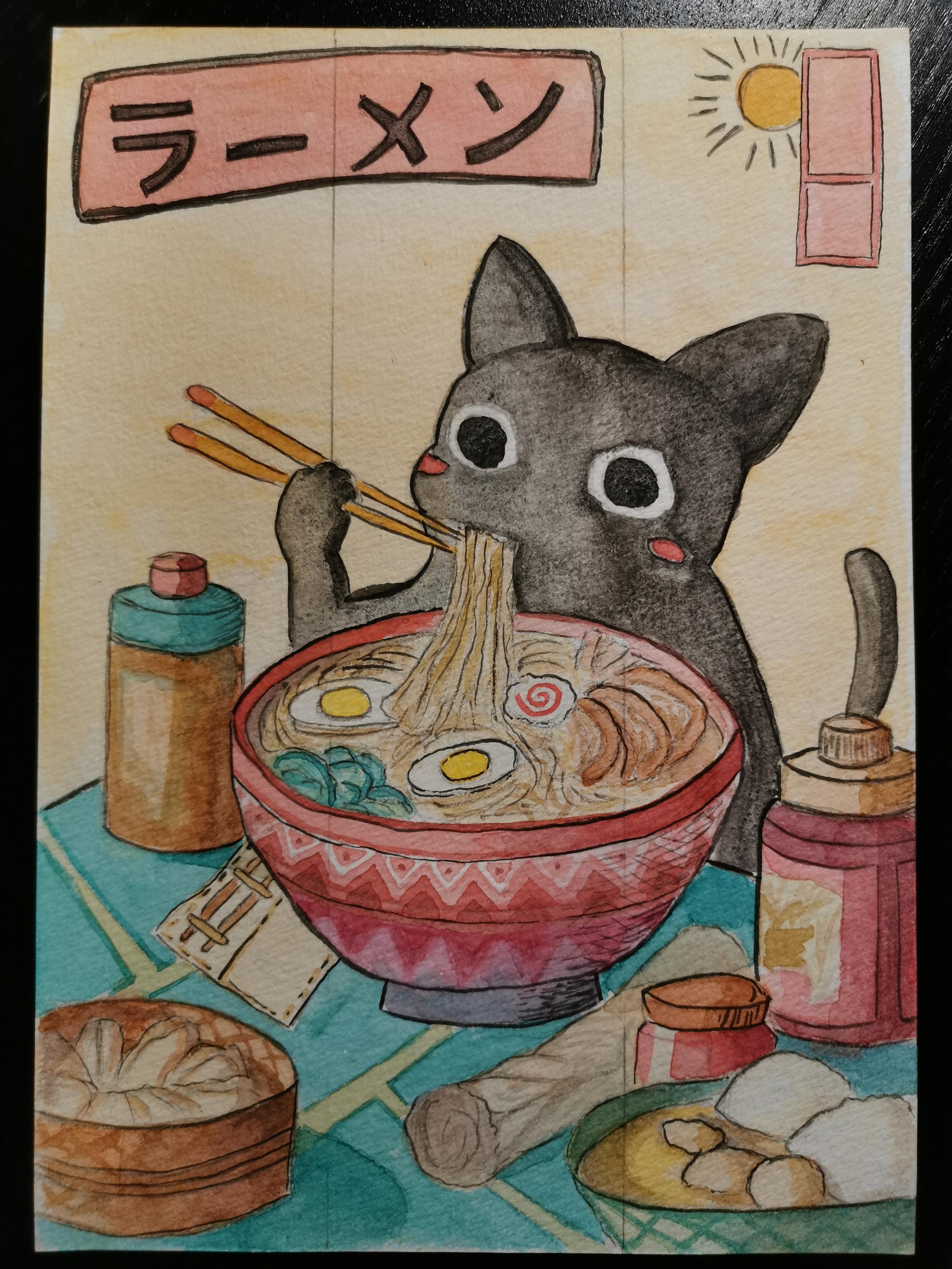 Condivido un segnalibro fatto in #acquerello per un amico a cui piacciono molto i gatti.