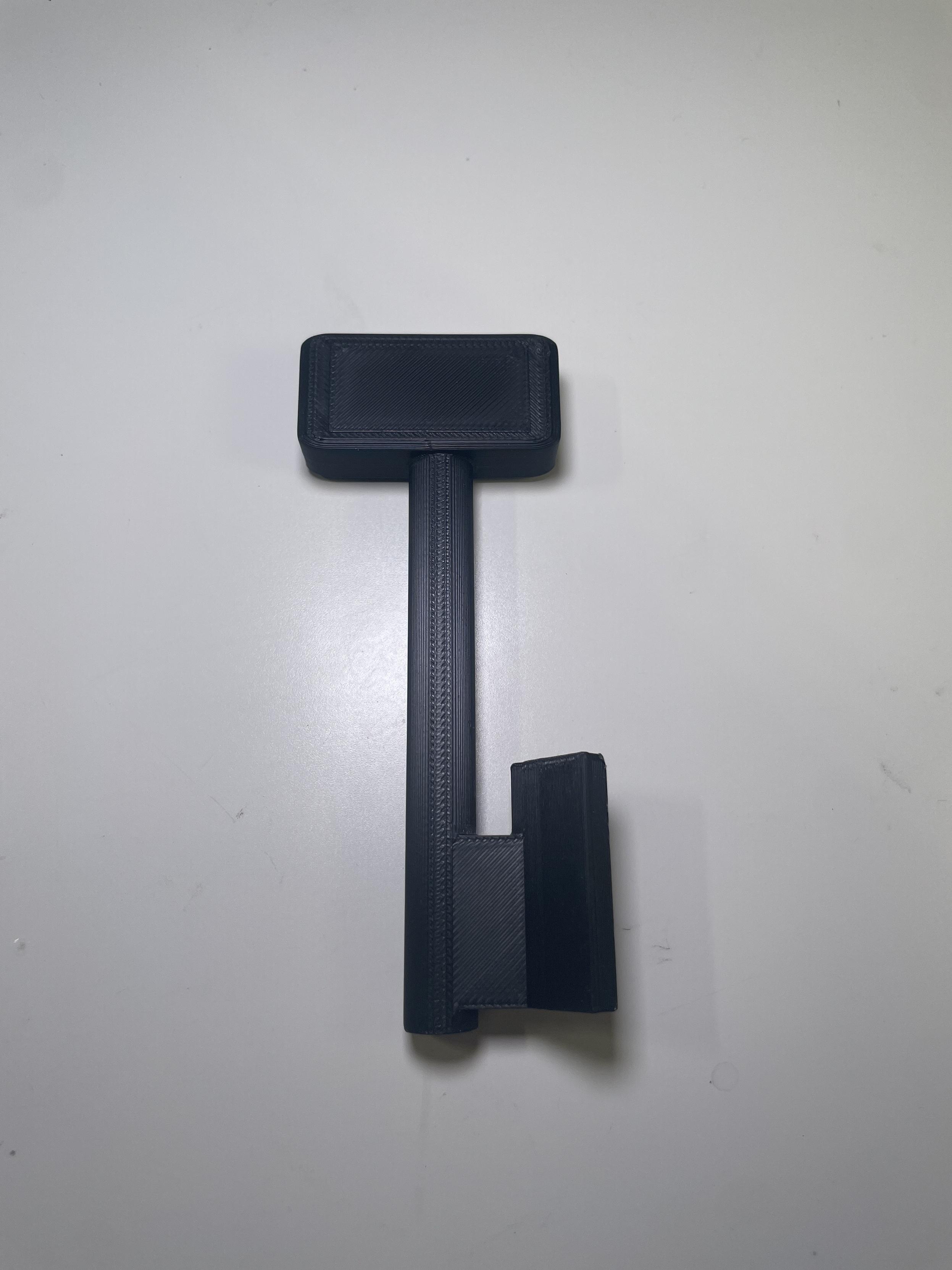 A 3D printed water meter key, black against a white background