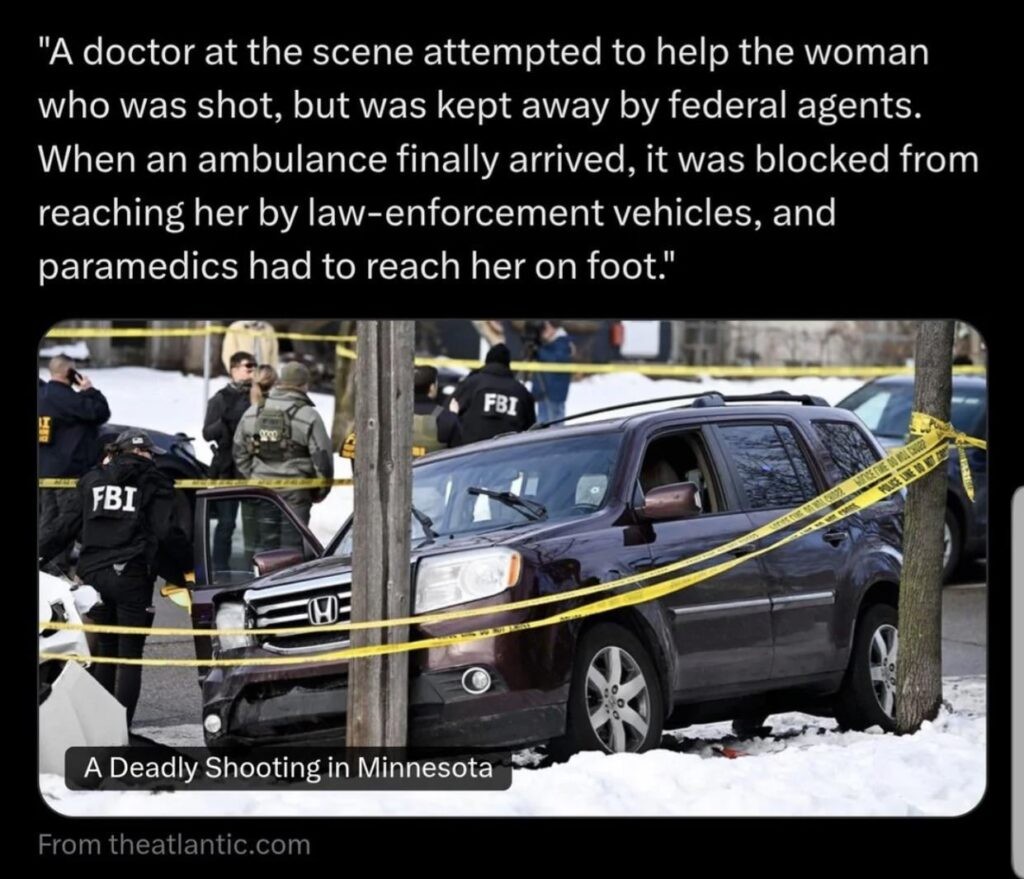 A doctor at the scene attempted to help the woman who was shot, but was kept away by federal agents. When an ambulance finally arrived, it was blocked from reaching her by law-enforcement vehicles, and paramedics had to reach her on foot. https://www.inbella.com/1466052/a-doctor-at-the-scene-attempted-to-help-the-woman-who-was-shot-but-was-kept-away-by-federal-agents-when-an-ambulance-finally-arrived-it-was-blocked-from-reaching-her-by-law-enforcement-vehicles-an/ #Fauxmoi #Gossip #politics