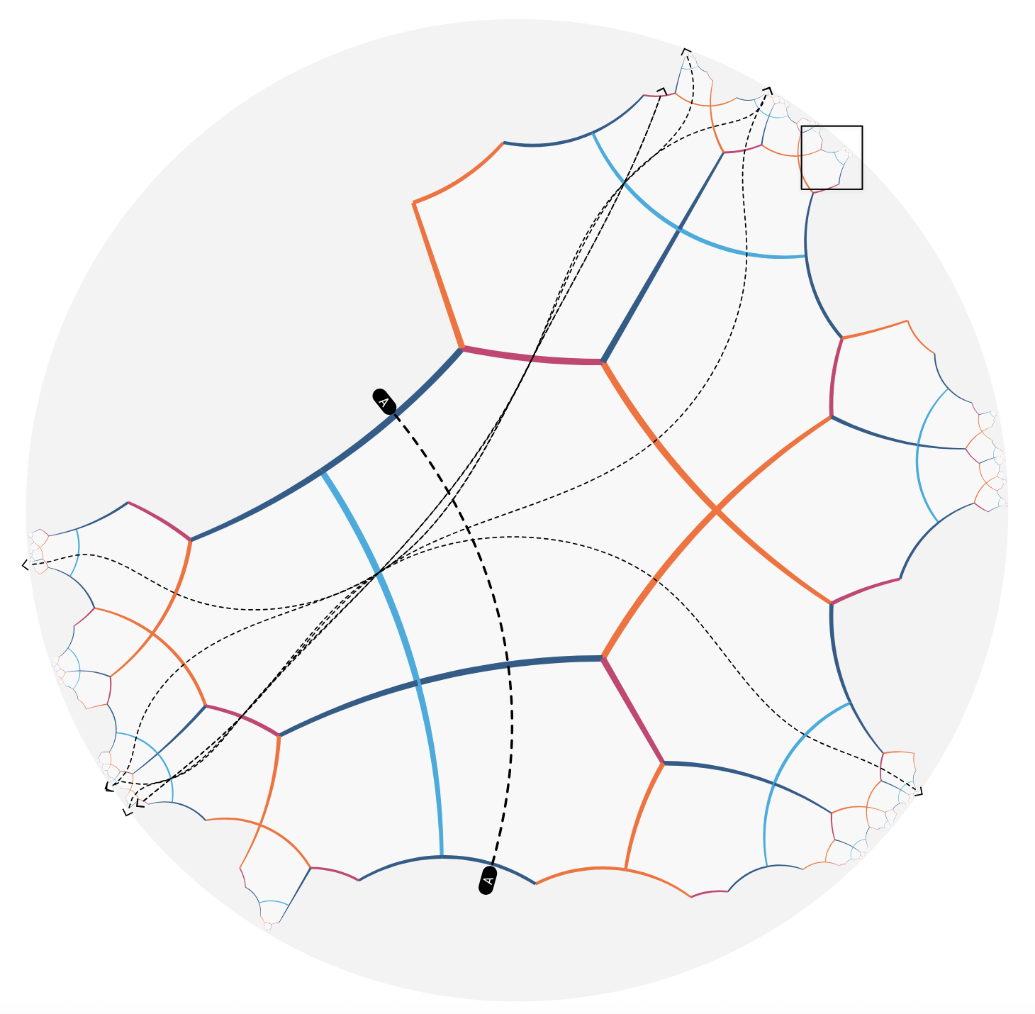 The unfolded hexagonal tile in the Poincaré plane with zoom in.