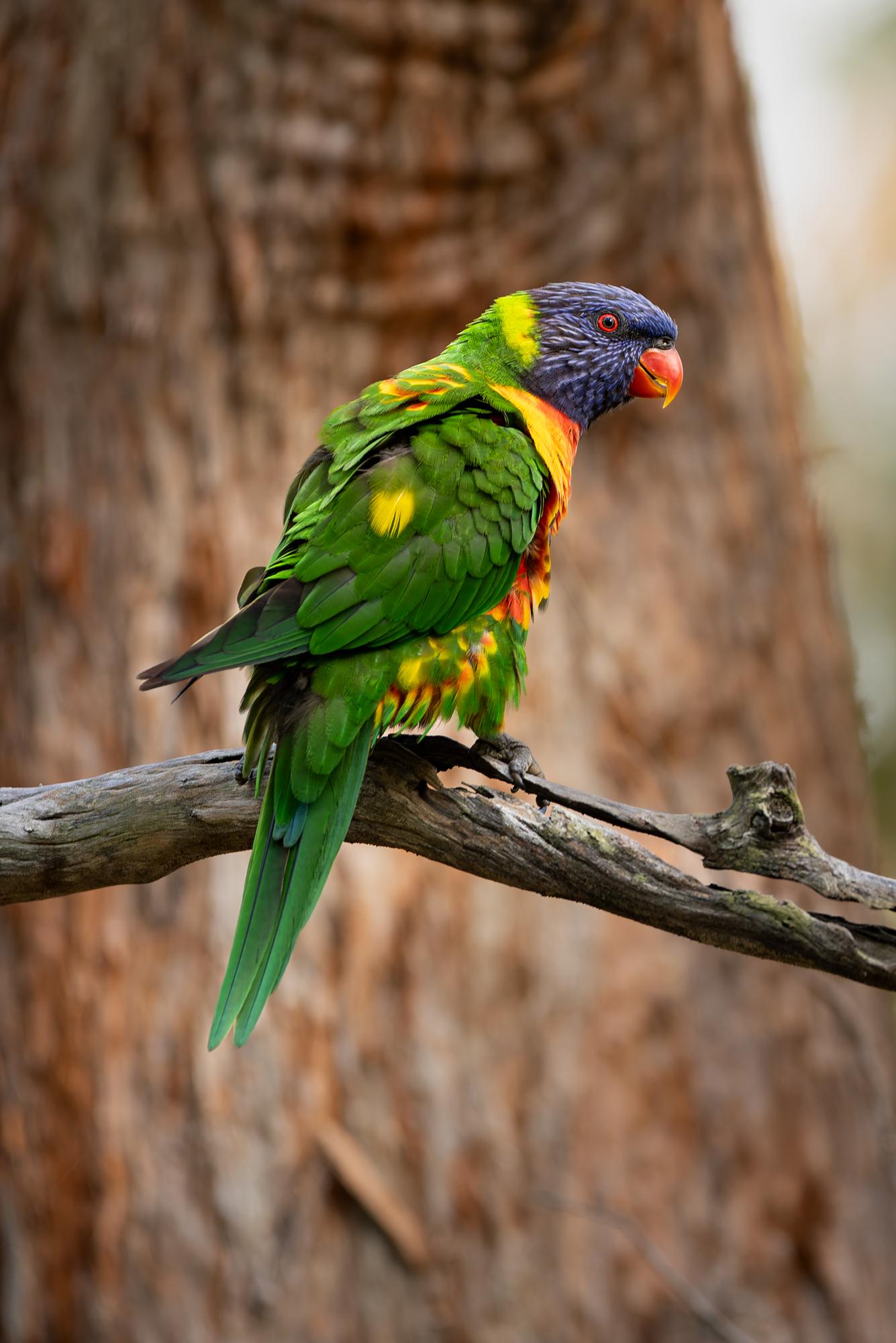 Rainbow Lorikeets being their usual noisy selves while feeding on some eucalyptus flowers.