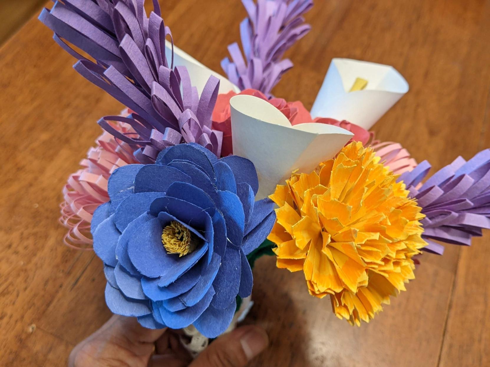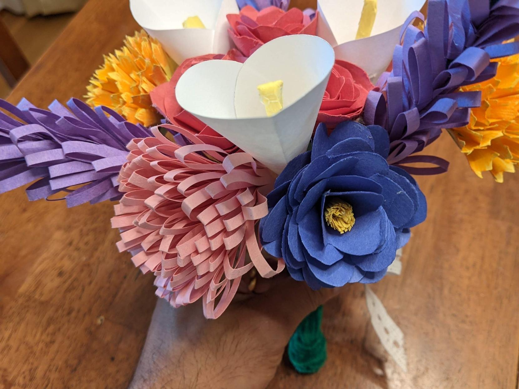 Sort of #Bloomscrolling I suppose, I'm admiring and taking great joy in these paper flowers that Kid2 crafted in free time and evenings last week.