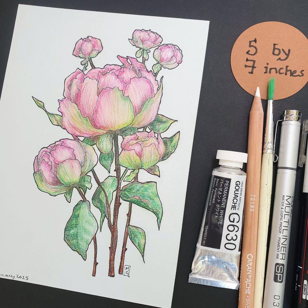 #Peonies #Flowers #OriginalArt #Drawing #ColourPencil #PenAndInk #Artwork #TraditionalArtist #ArtFromScotland #GiftIdeas #ArtShop #ShopIndy #SupportSmallBusiness #Sale #Bargain #Clearance