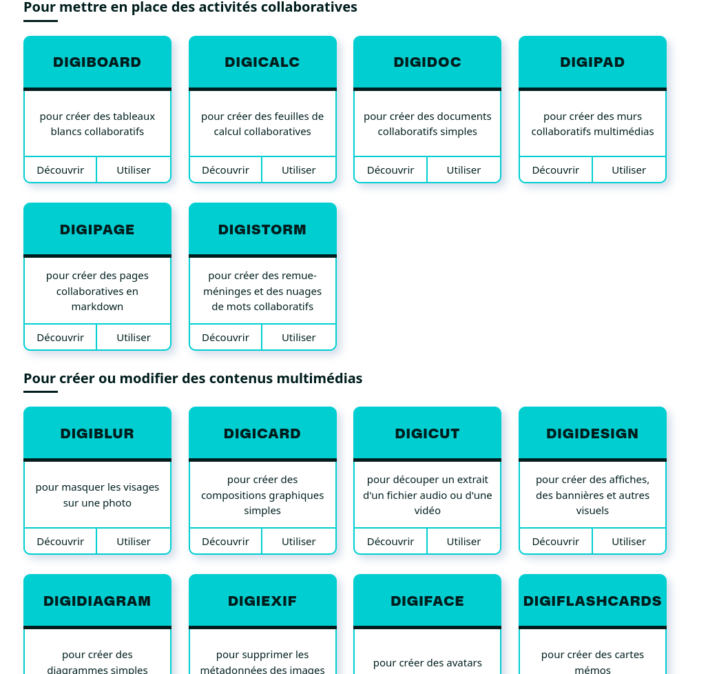 Capture d'écran présentant une partie des outils proposés sur LaDigitale