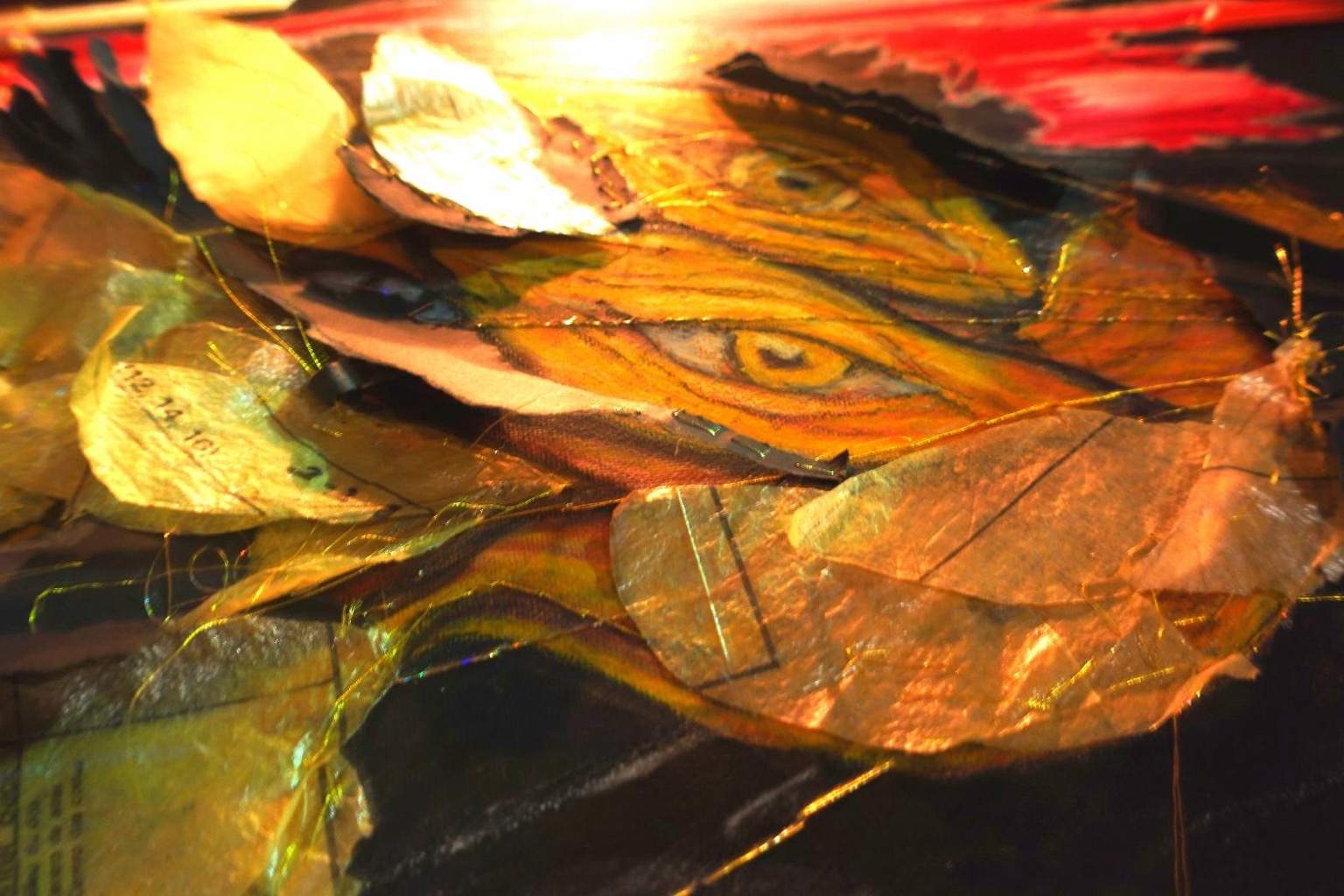 We see me, the artist holding a painting of a Phoenix, a friend is smiling impishly in the corner of the frame. The painting is a FaeNix Phoenix, a symbol that held the many roles already fulfilled in my life, wings painted like eyes, feathers were sewing patterns sprayed with a glitter adhesive for stiffness and then sewn onto the canvas itself. We can see the words Woman and Mother as some of the roles seen. We see hands moving over canvas, candles being adhered to the canvas, the details of the painting being seen by only candlelight in a darkened room. Then we see the FaeNix hanging from a ladder, outside, there is snow in the ground, it is Imbloc and my sweet red headed angel of a friend will be burning the FaeNix so that I can just watch and absorb the Magick I made. We see two people filming and Huntur is grinning impishly again. We see them flick a lighter and begin lighting the candles on the FaeNix. And then she burns. The FaeNix burns and burns until all that is left the frame of the painting, a corner still has a few flames left alight. Magick!