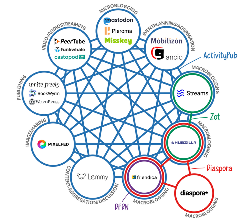 Platforms in the Fediverse and the language they speak. Image cropped from the