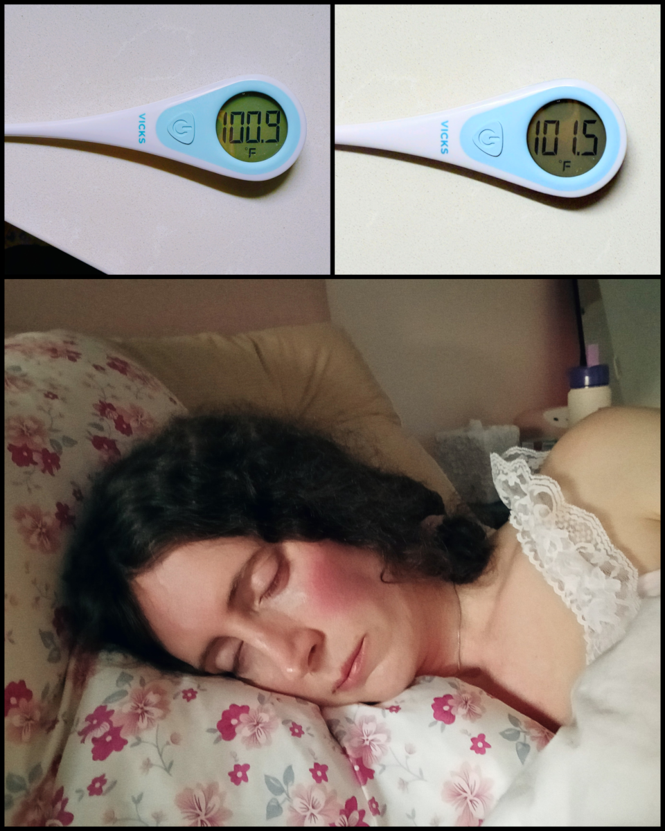 - fever please stay under 101.0F (wishful thinking, it's >101.5 now, nope