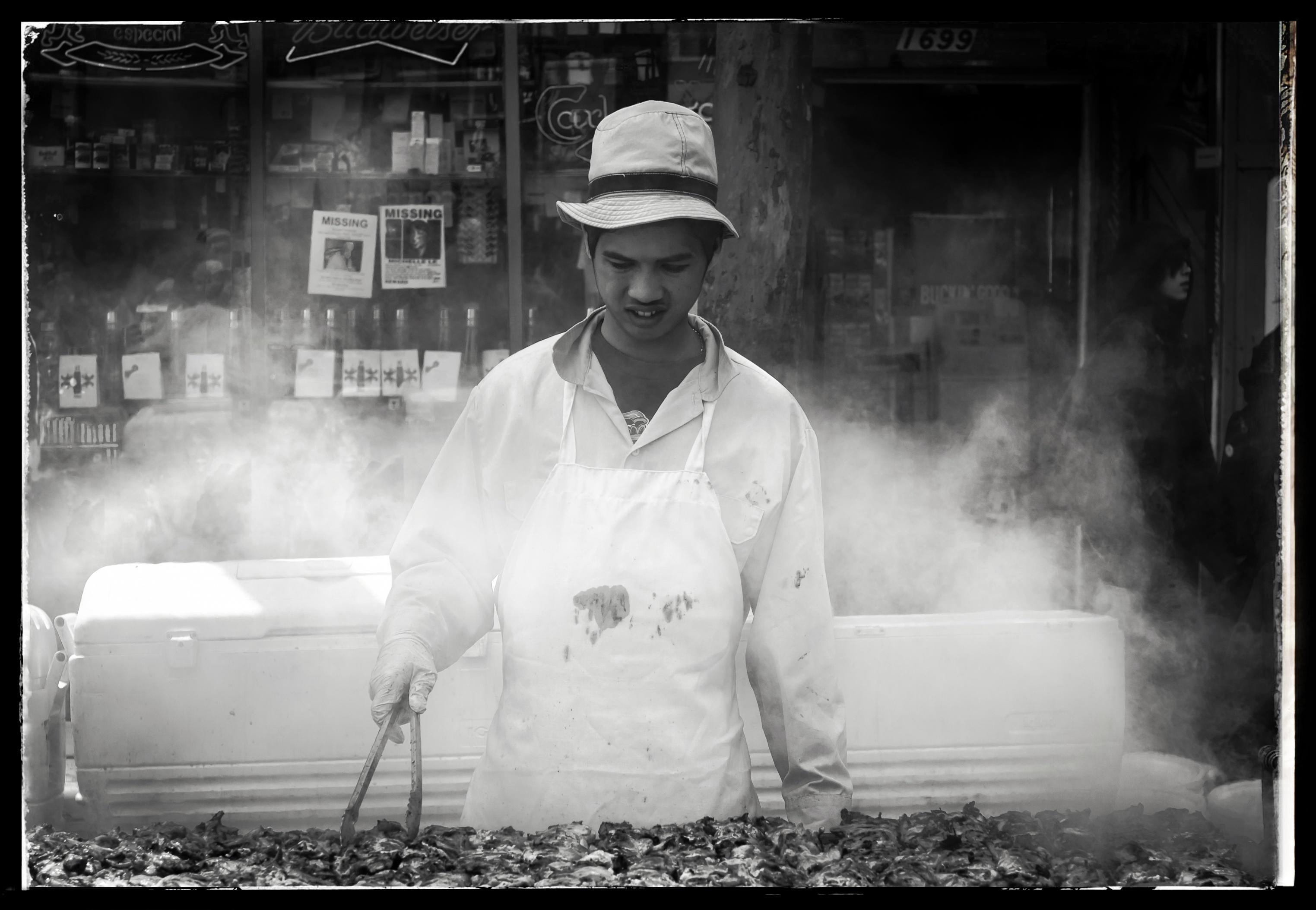 Street vendor and smoke.