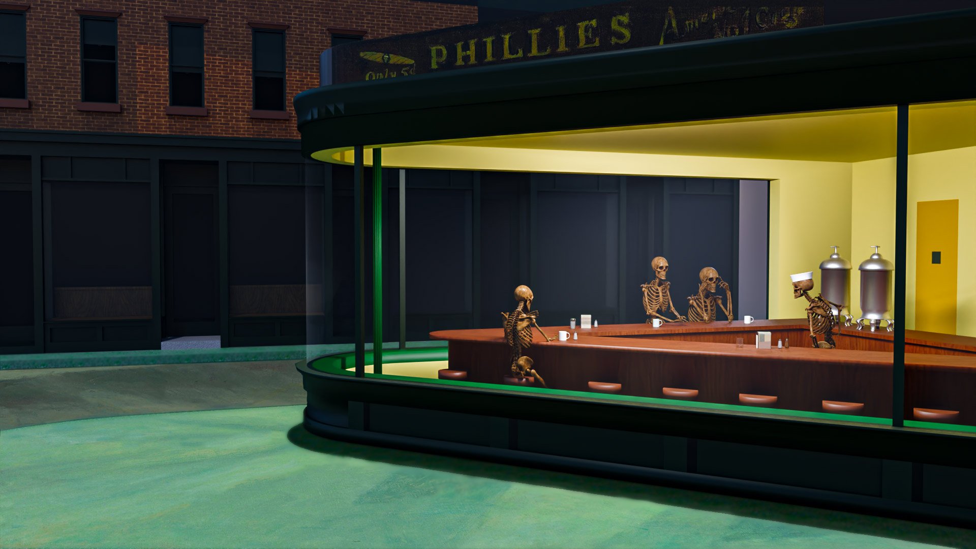 #inktober #inktober2025 #inktober25 #rendertober #rendertober2025 #rendertober25 #3DRender #render #RenderedArt #Xanathon #Nighthawks #Blender #Blender3D #Skeletons